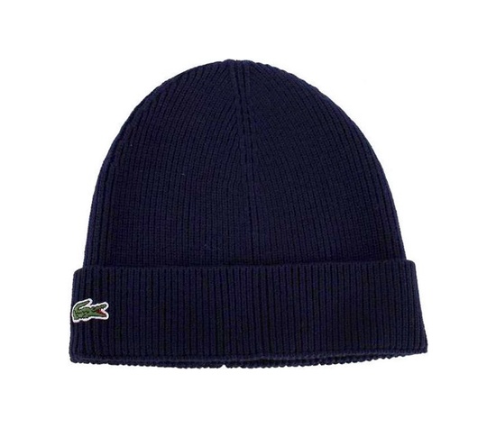 Lacoste muts donkerblauw. De kwaliteit van deze muts is 100% wol.