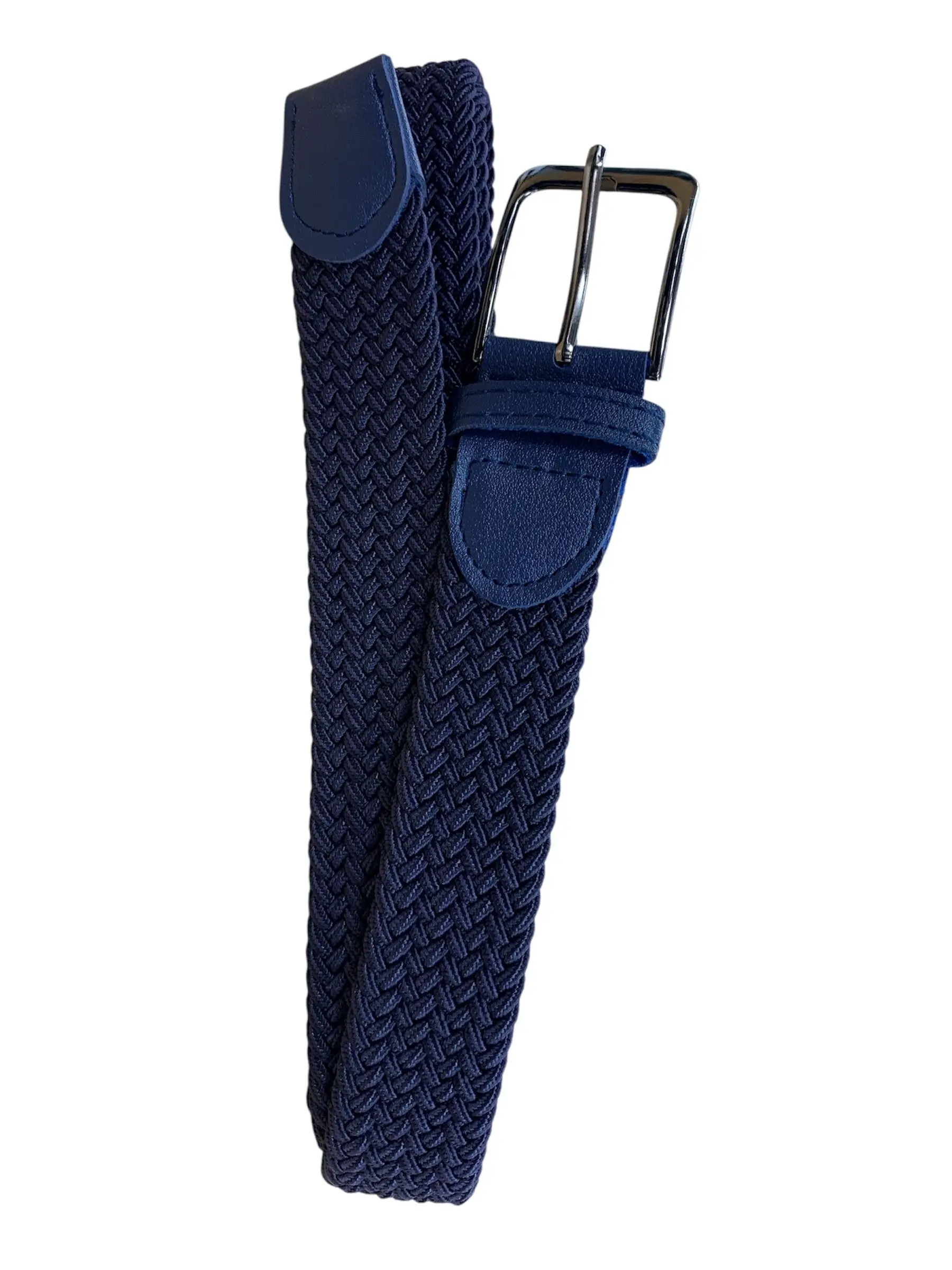 Stretch riem donkerblauw 3,5cm breed.Het Broekenpaleis extra lange maat stretch riem blauw