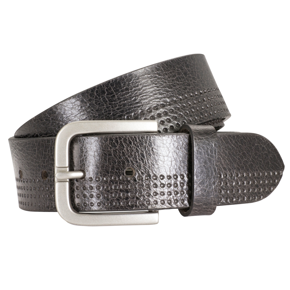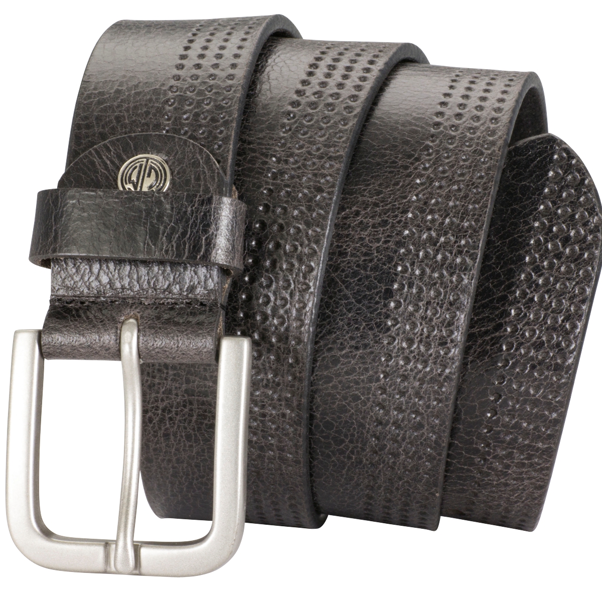 Deze zwart lederen riem is vervaardigd uit echt rundleder van hoge kwaliteit, wat zorgt voor een robuuste en duurzame riem die jarenlang meegaat. Het gestanste stipjes design voegt een unieke en stijlvolle touch toe aan de riem, waardoor het een opvallend accessoire is voor zowel formele als casual outfits.