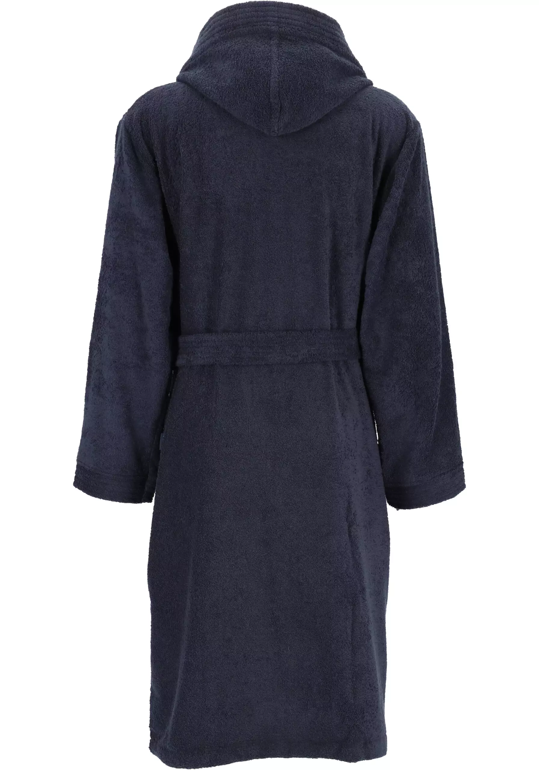 Ceceba badstof badjas donkerblauw met capuchon in een super zachte kwaliteit. Badjas in donkerblauw met capuchon 2 zakken en ceintuur in 100% organisch katoen.