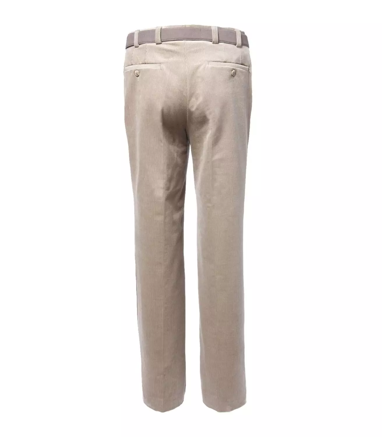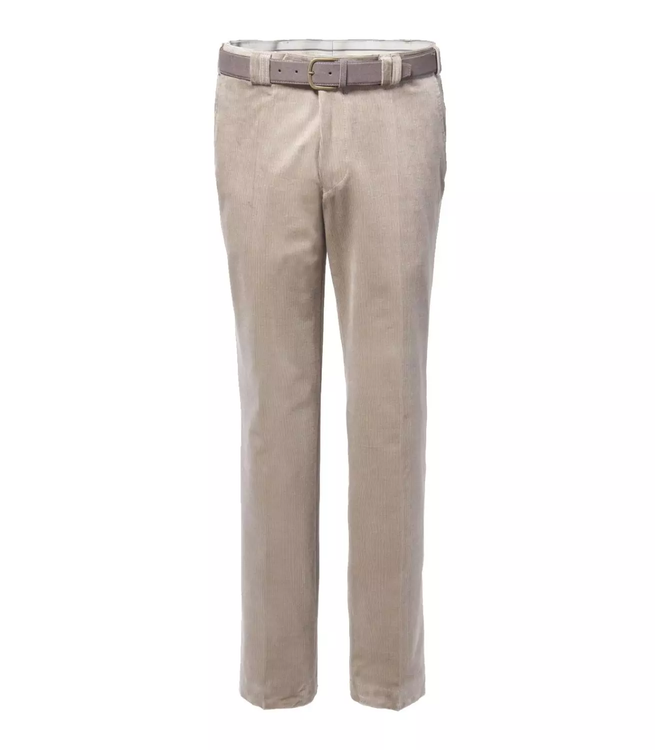 Luigi Morini stretch ribcord pantalon camel. Deze pantalon is in een door draag kwaliteit in model flatfront, twee schuine steekzakken voor en twee achterzakken met knoop. Een gulp met ritssluiting inclusief riem. De hoogwaardige Duitse kwaliteit is 82%katoen, 15%polyester en 3%elastan. Machine wasbaar 30graden.