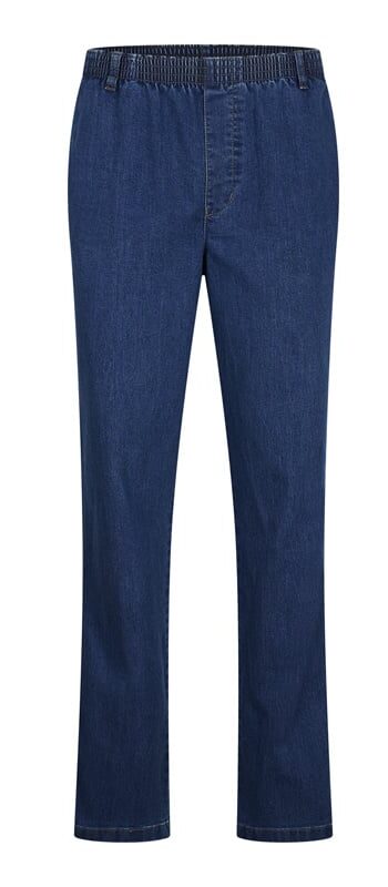 Luigi Morini grote maat chino jeans met elastische band blauw. De in principe model joggingbroek heeft geen rits en knoop sluiting, maar trekt u gewoon aan als een joggingbroek. Aan de elastische band zitten riem lussen.