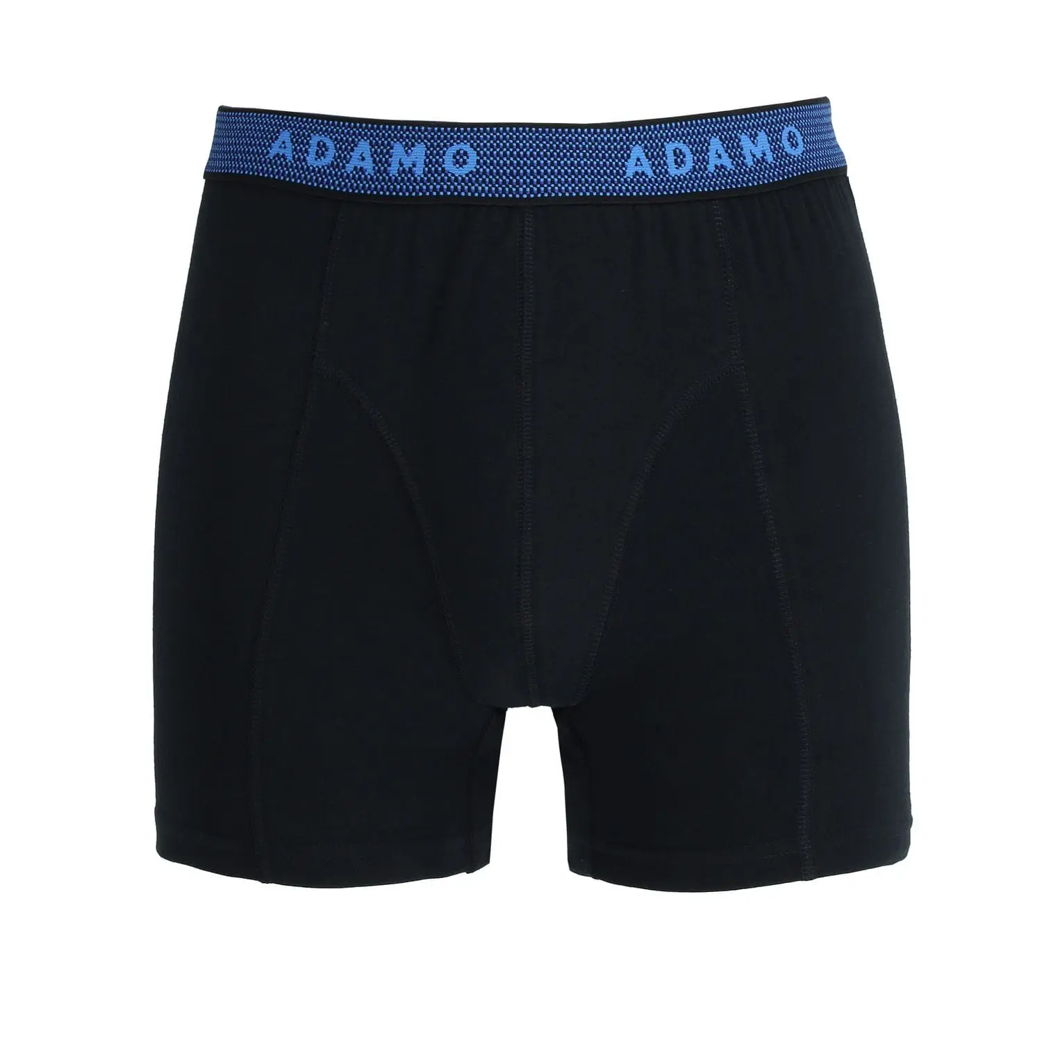 Adamo grote maat 3 boxershorts zwart. 3 stuks verpakking om het been aansluitende boxershorts met gekleurde band zonder gulp in model Jerry. De kwaliteit van deze stretch boxershorts is 95% katoen en 5% elastan.