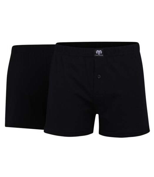 Ceceba los om het been dragende boxershorts in zwart. Boxershort met gulp en elastische band per 2 stuks verpakt. De kwaliteit is 100%katoen.