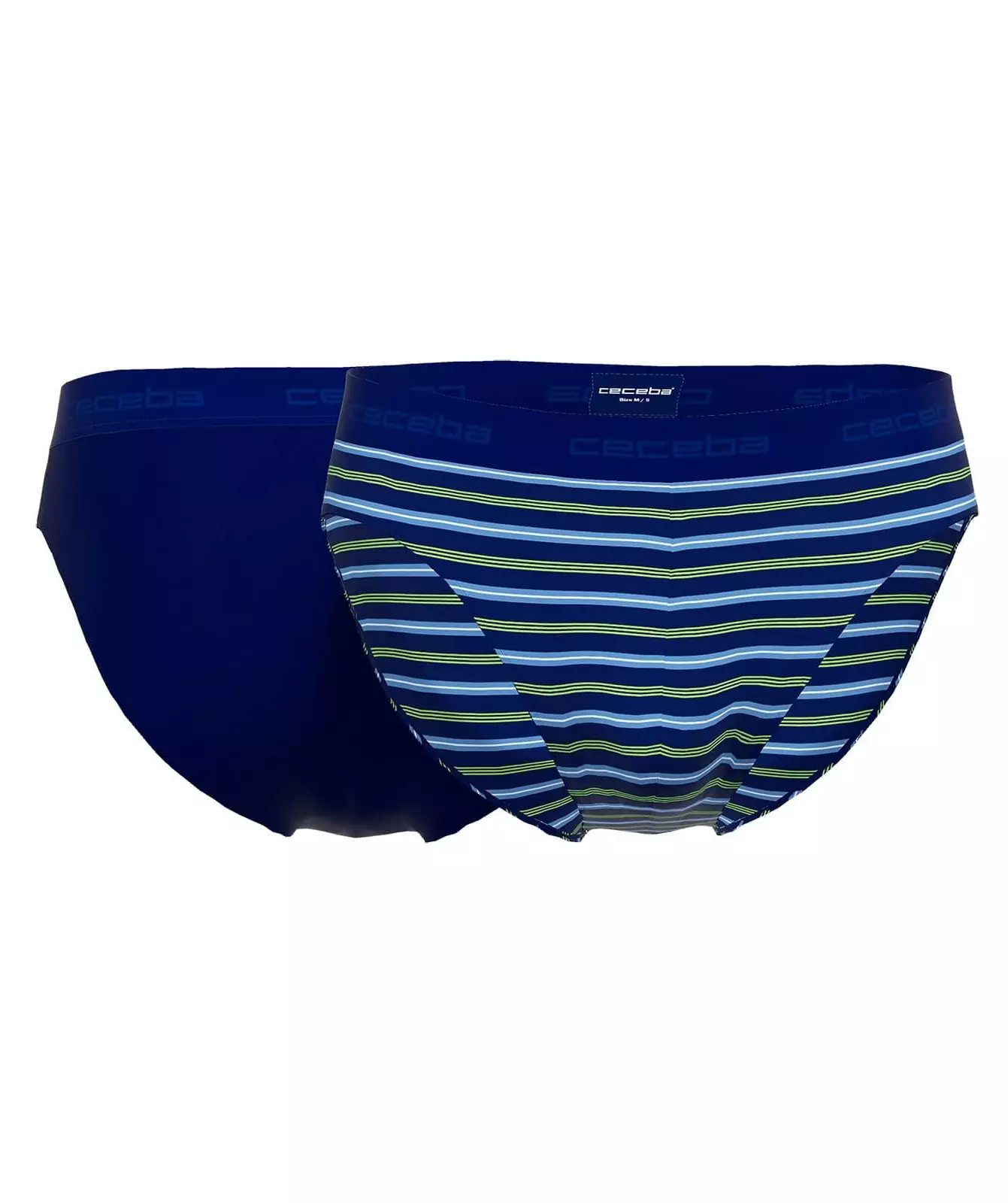 Ceceba slips per 2 stuks verpakt in uni blauw en een bewerkt. Stretch slips met elastische band in 95% katoen en 5%elastan we are green klimaat neutraal geproduceerd.