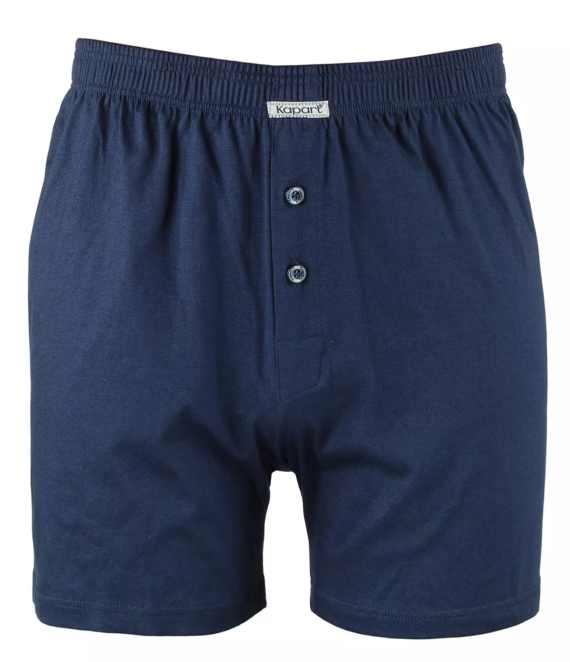 Kapart boxershort donkerblauw met gulp in 100% gemerceriseerd glansgaren katoen. Kapart boxershorts zijn van hoogwaardige Duitse kwaliteit. De boxershort is voorzien van 2 knoopjes op de gulp.