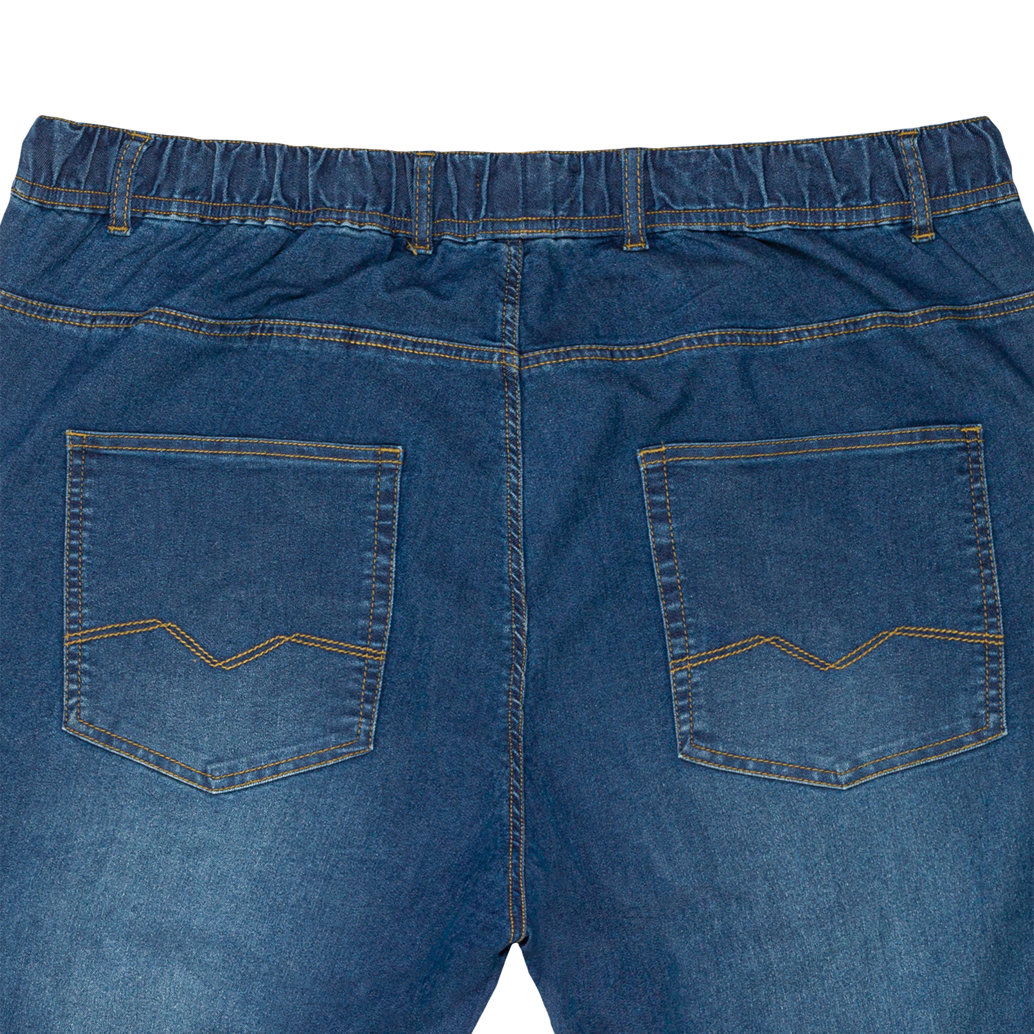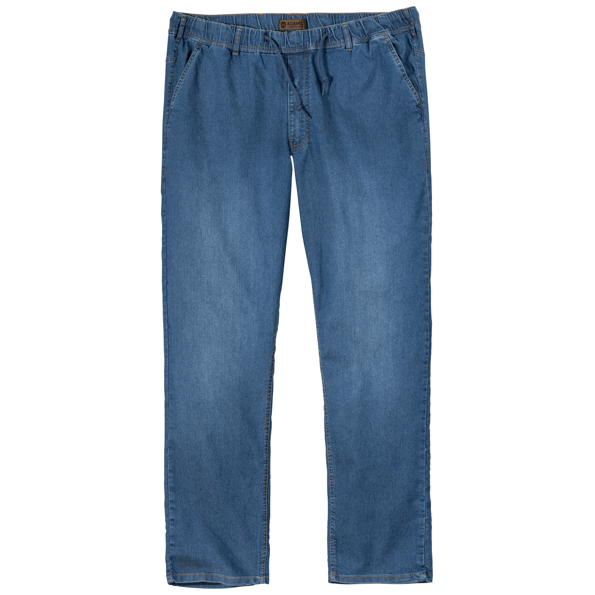Adamo grote maat joggingjeans blauw Texas. Adamo denim joggingjeans met tunnel koord in de band om de joggingbroek strakker aan te trekken. Joggingjeans met 2 zijzakken en 2 achterzakken, Deze broek heeft een volledige stretch band zonder knoop maar wel met gulp ritssluiting.