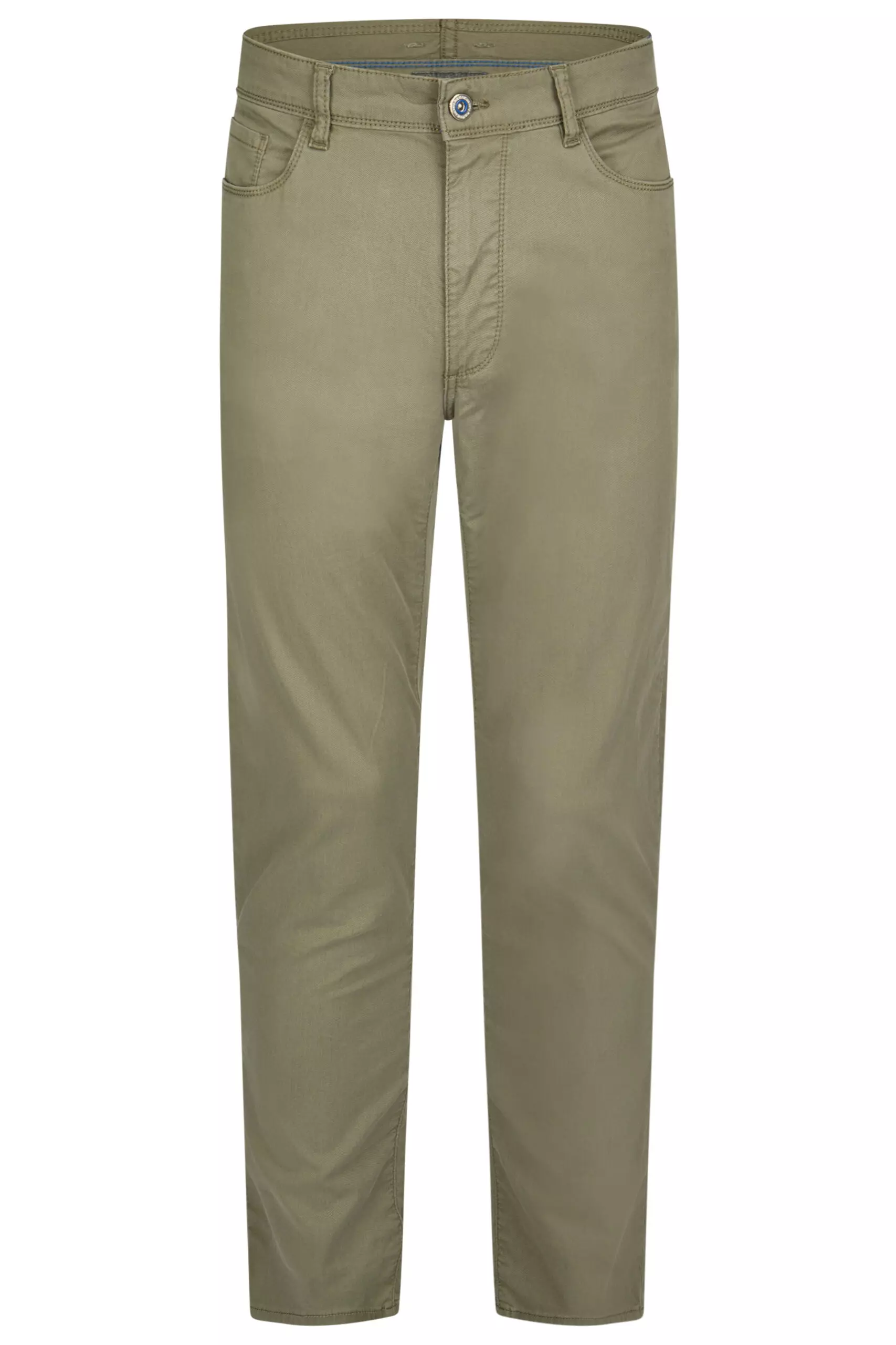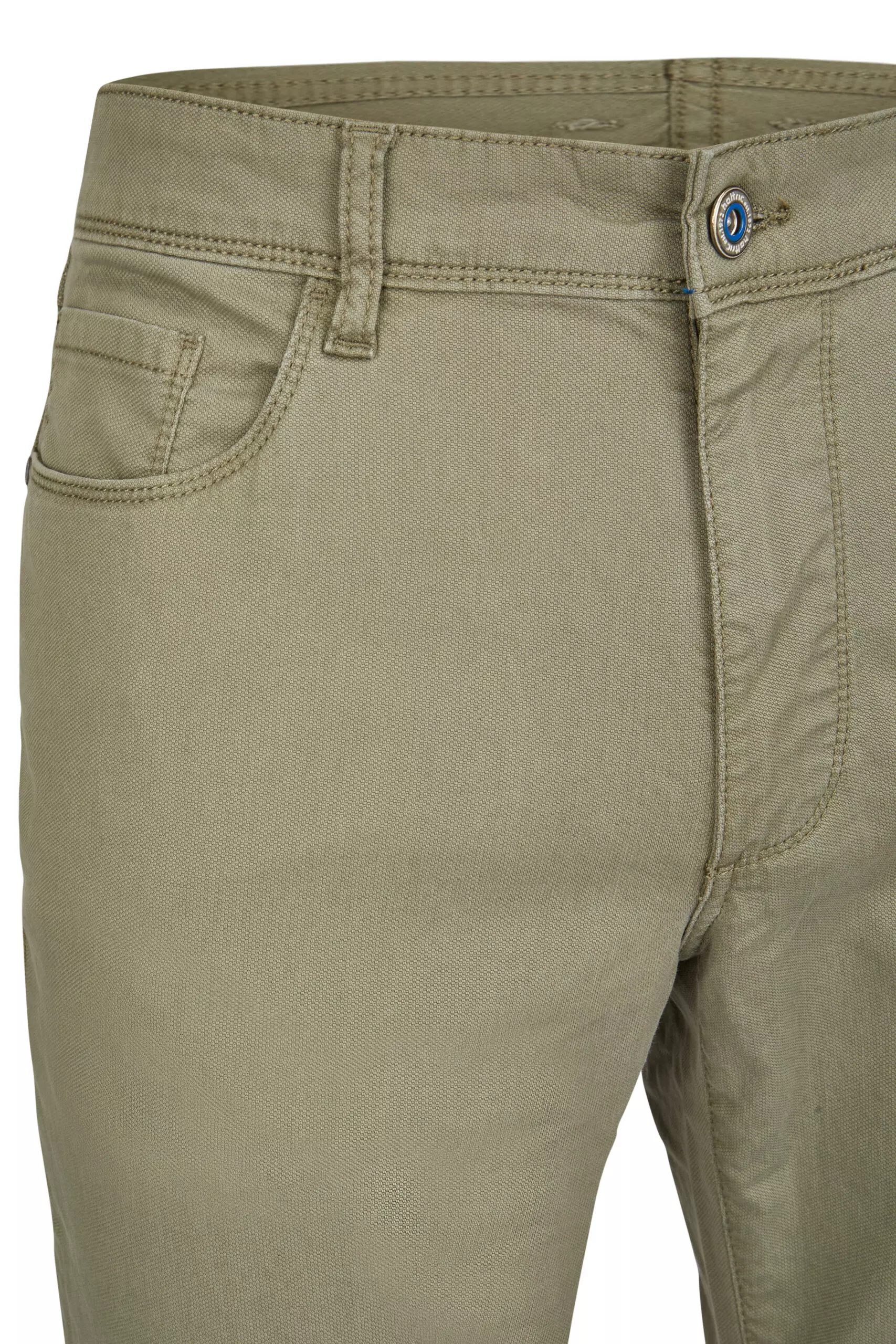 Hattric 5 pocket zomer stretch jeans in groen met een ingeweven structuurtje en een moderne smalle pijp. De kwaliteit van deze jeans is 97%katoen en 3%elastan.