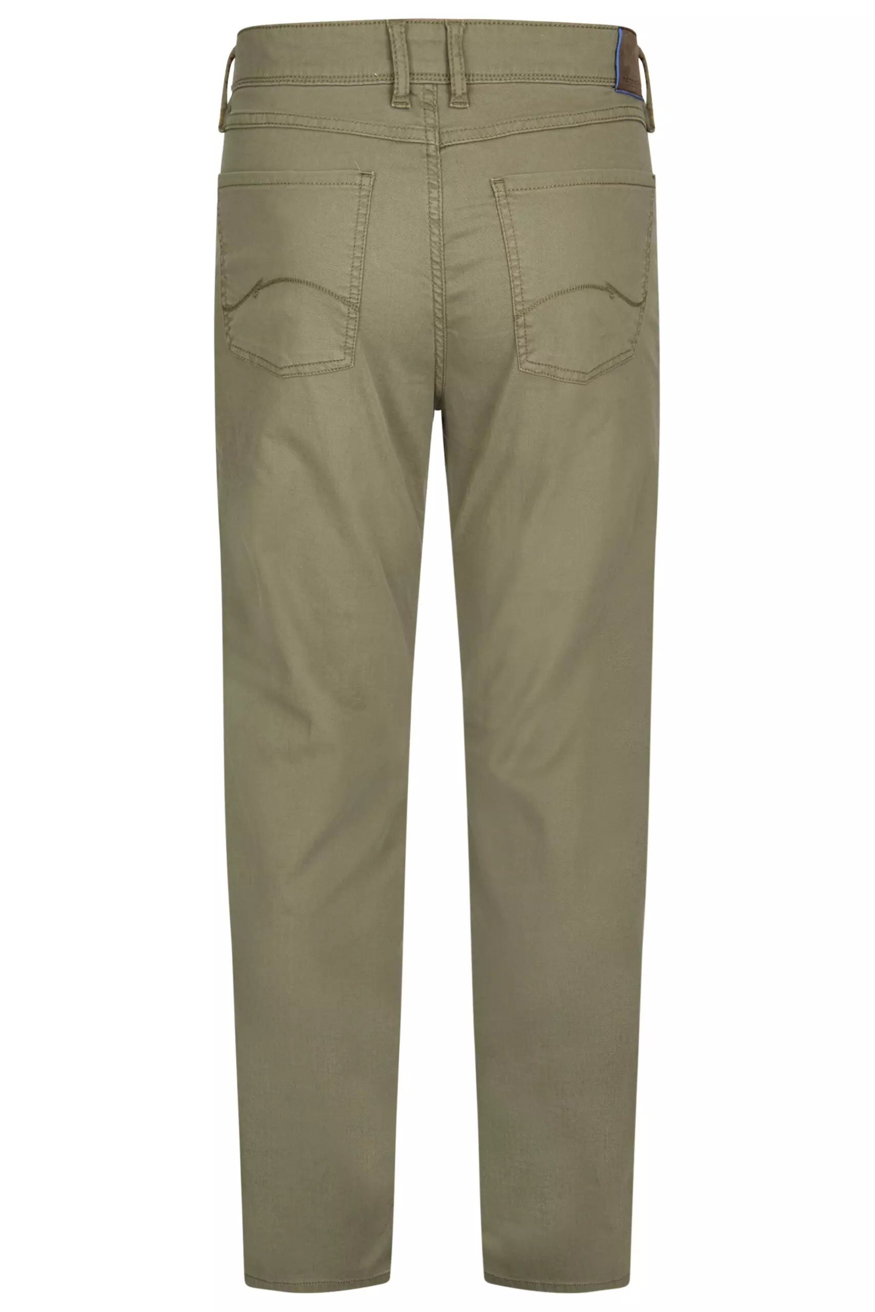 Hattric grote maat stretch zomer jeans groen. Hattric 5 pocket stretch zomer jeans met een ingeweven structuurtje. Model hunter met een moderne smalle pijp. De kwaliteit van deze jeans is 97% katoen en 3% elastan.