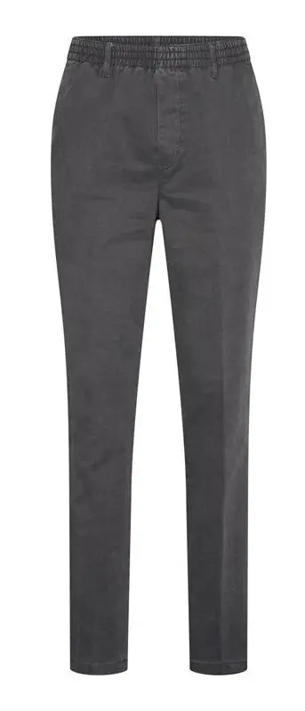 Luigi Morini chino denim joggingjeans met elastische band donkergrijs. De in principe model joggingbroek heeft geen rits en knoop sluiting, maar trekt u gewoon aan als een joggingbroek. Aan de elastische band zitten riem lussen. Deze broek heeft 2 zijzakken en 1 achterzak met knoop sluiting. De kwaliteit is 98% katoen en 2% elastan.