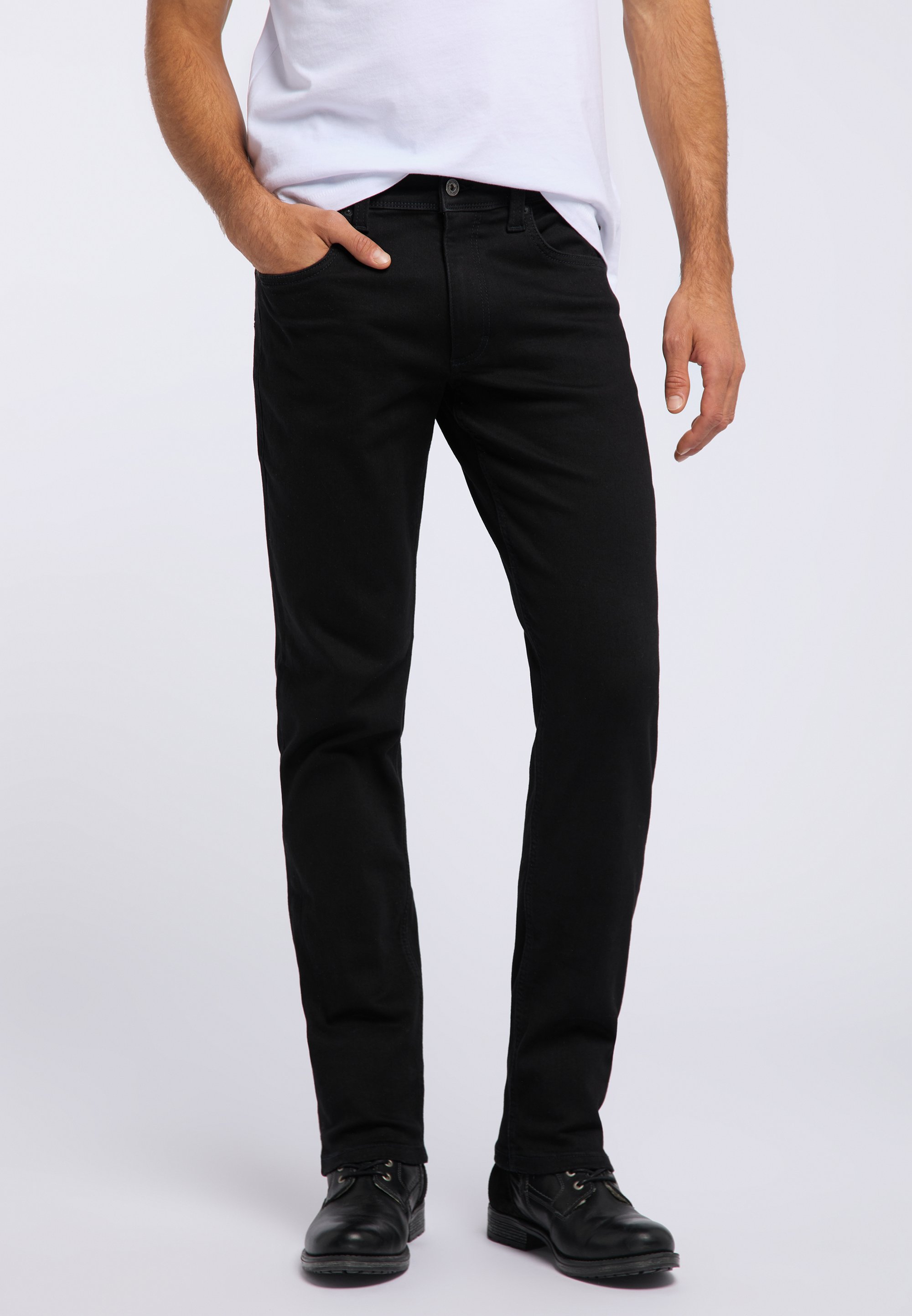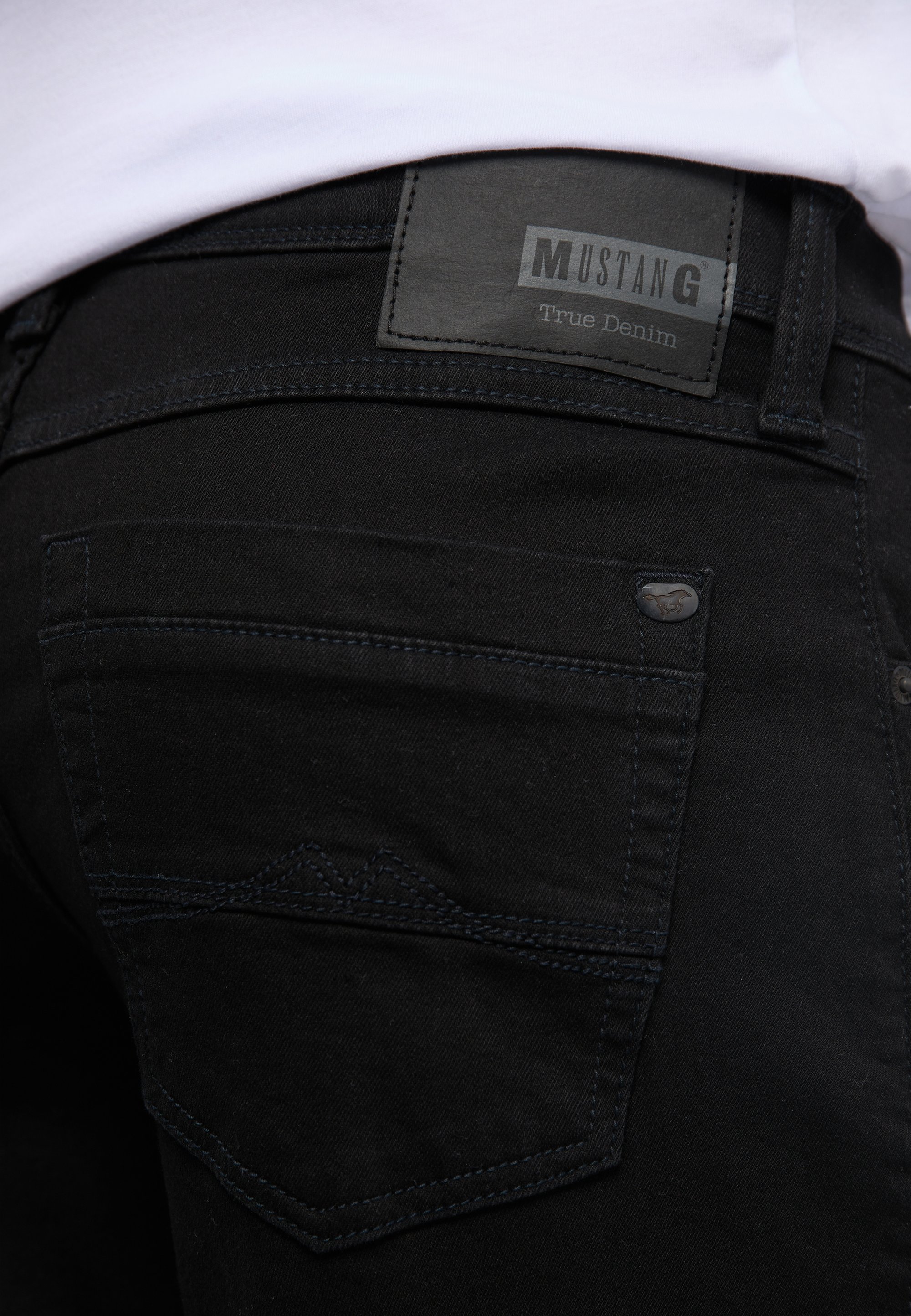 De diepe **zwarte kleur** geeft deze Mustang jeans een moderne, veelzijdige uitstraling. Combineer hem met een overhemd voor een nette look of draag hem met een T-shirt en sneakers voor een casual outfit.