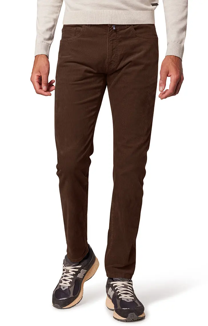 Pierre Cardin stretch 5 pocket ribcord bruin Lyon. De kwaliteit is 98% katoen en 2% elastan.