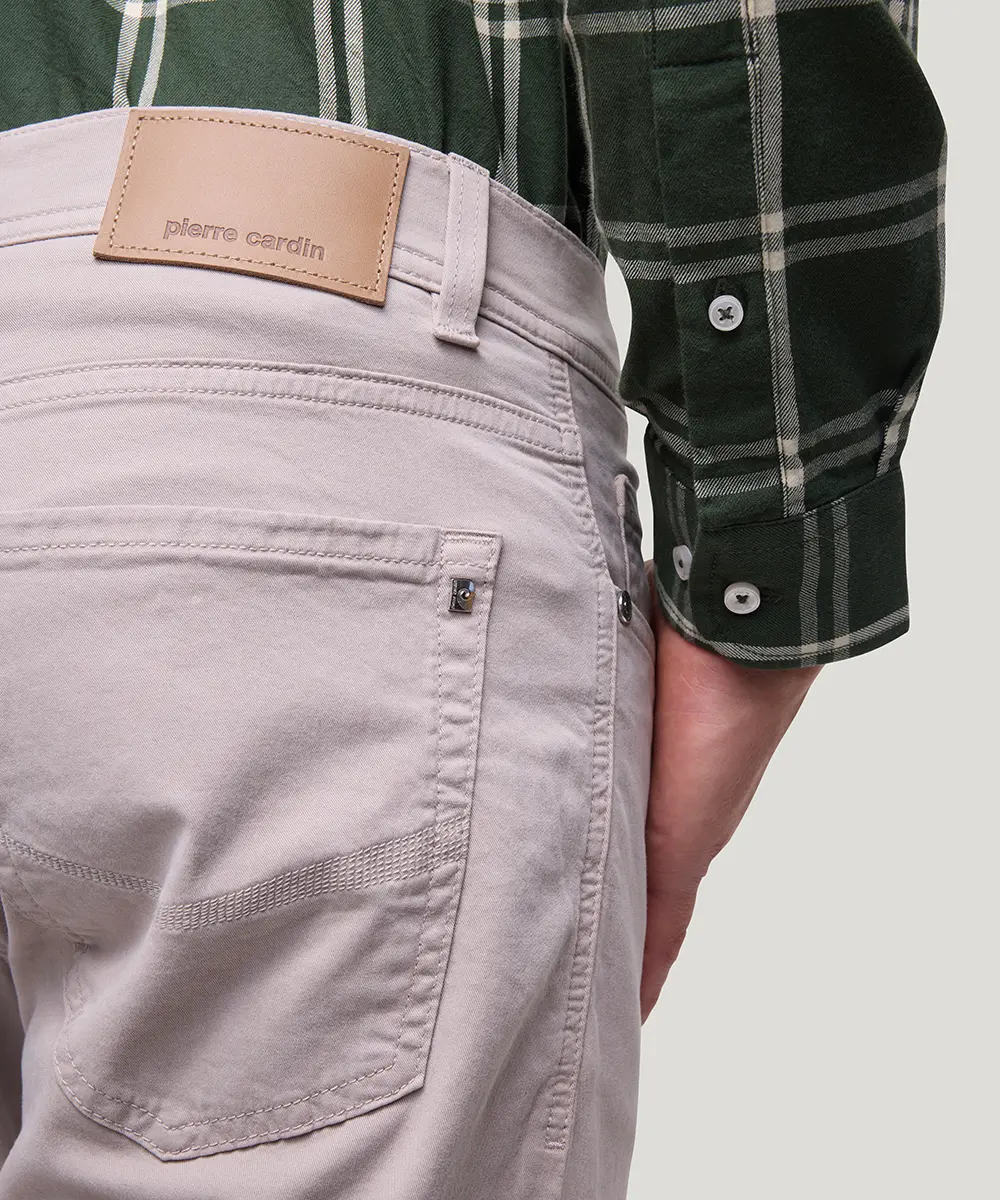 Pierre Cardin stretch jeans khaki Lyon. Pierre Cardin future flex stretch 5 pocket jeans met rechte pijp en hoog aansluitend in de taille. De kwaliteit is 72% katoen, 26% Lyocell, 2% Elastaan.