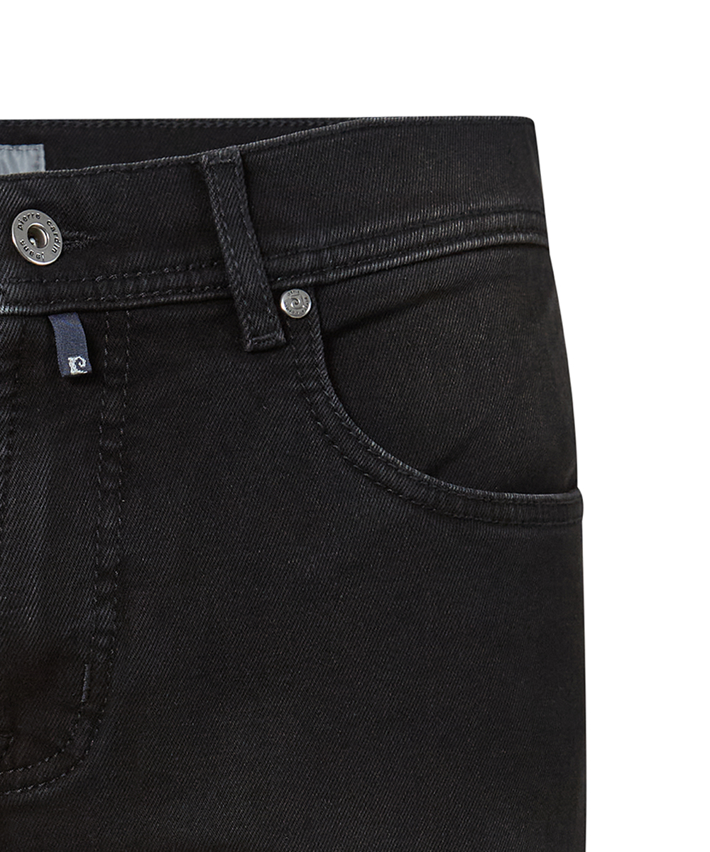 Pierre Cardin 5 pocket stretch jeans zwart light used Lyon tapered. 5 pocket stretch jeans in 65% katoen, 33% polyester, 2% Elastan.