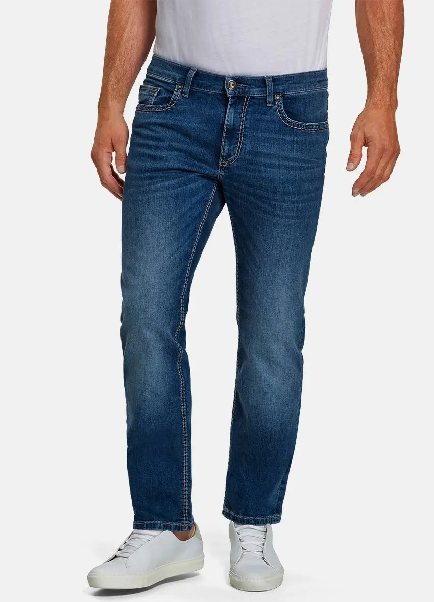Pioneer 5 pocket megaflex stretch jeans in dark stone washed light used washing model Rando. Machine wasbaar op 40º.