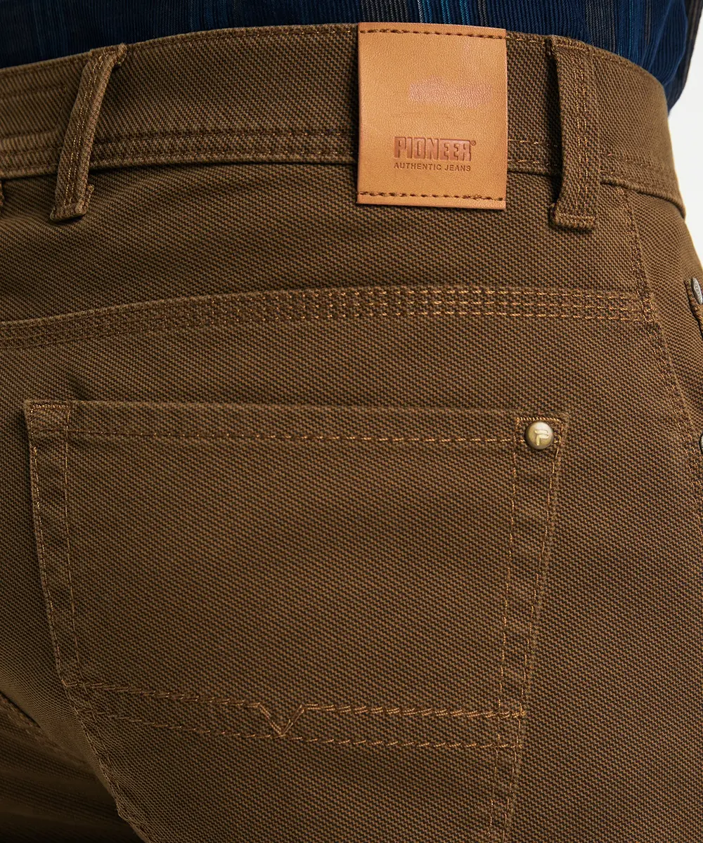 Pioneer jeans stretch camel structuurtje model Thomas. Deze casual jeans is gemaakt van 98% katoen en 2% elastan.