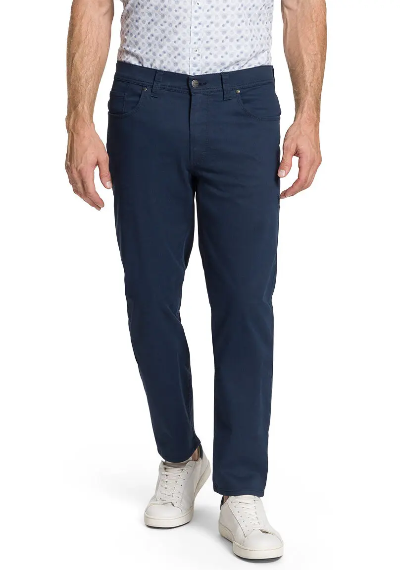 Pioneer grote maat casual stretch jeans donkerblauw structuurtje model Thomas. Deze casual jeans is gemaakt van 97%katoen en 3%elastan.