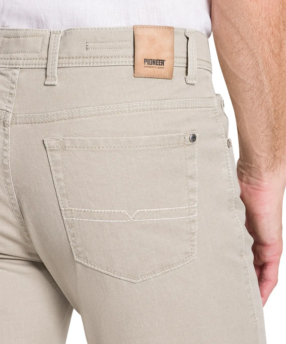 Pioneer casual stretch jeans in lichtbeige model Thomas. Deze casual jeans is exclusief riem. De kwaliteit is 98%katoen en 2%elastan megaflex.