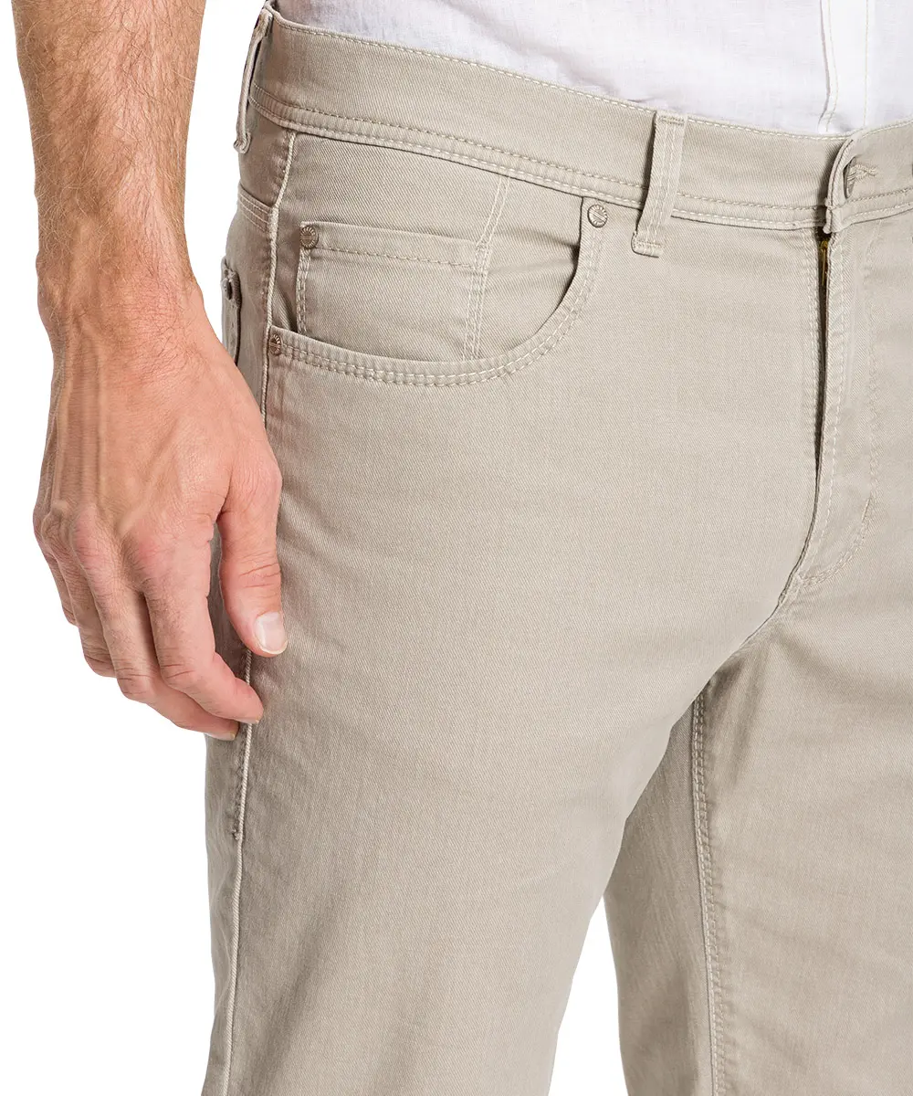 Pioneer casual stretch jeans in lichtbeige model Thomas. Deze casual jeans is exclusief riem. De kwaliteit is 98%katoen en 2%elastan megaflex.