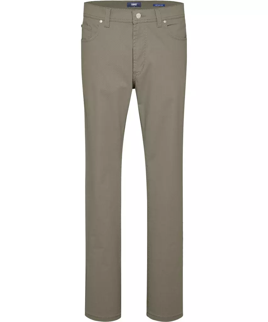 Pioneer casual stretch jeans in olijfgroen model Thomas. Deze casual 5 pocket zomer jeans heeft een modieus licht ingeweven structuurtje. De kwaliteit is 97%katoen en 3%elastan.
