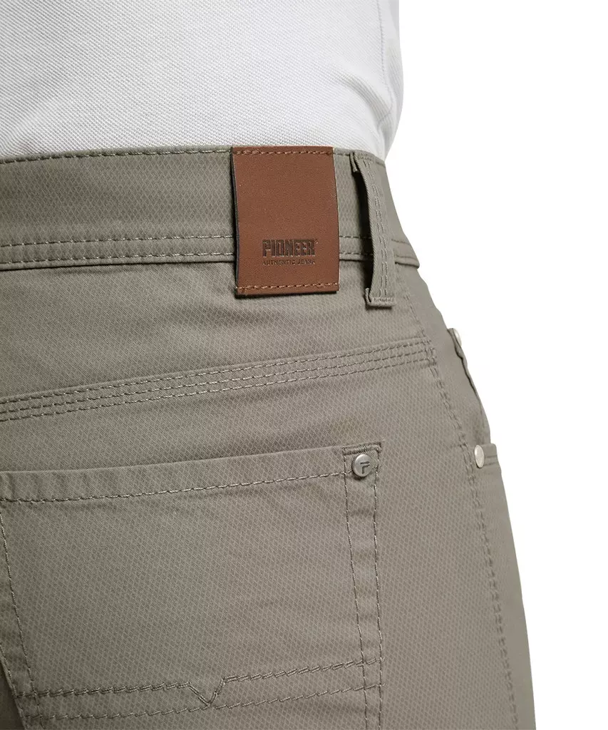 Pioneer casual stretch jeans in olijfgroen model Thomas. Deze casual 5 pocket zomer jeans heeft een modieus licht ingeweven structuurtje. De kwaliteit is 97%katoen en 3%elastan.