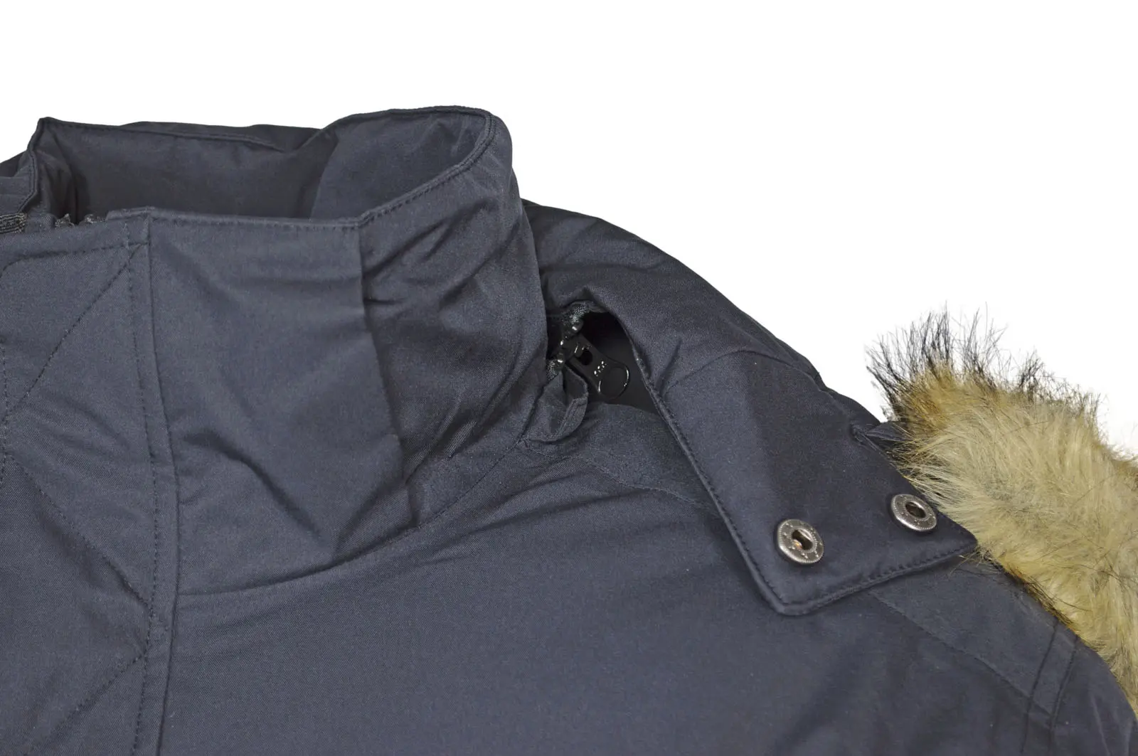 Brigg grote maat winter jack donkergrijs met capuchon. Jack heeft 4 zakken aan de buitenkant allemaal met rits en een binnenzak met drukker. In de mouwen zitten windvangers en de capuchon met namaak bont is afneembaar.