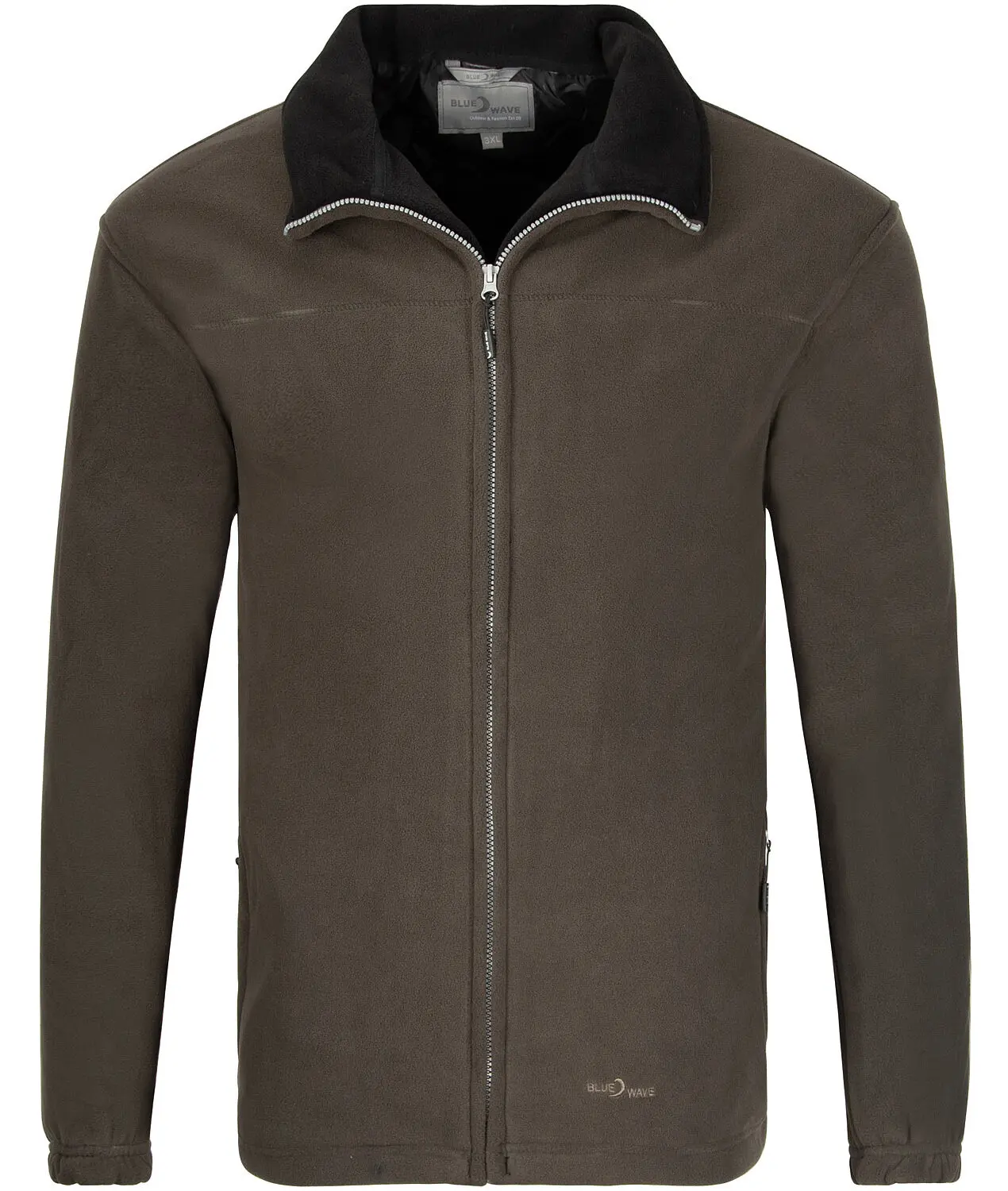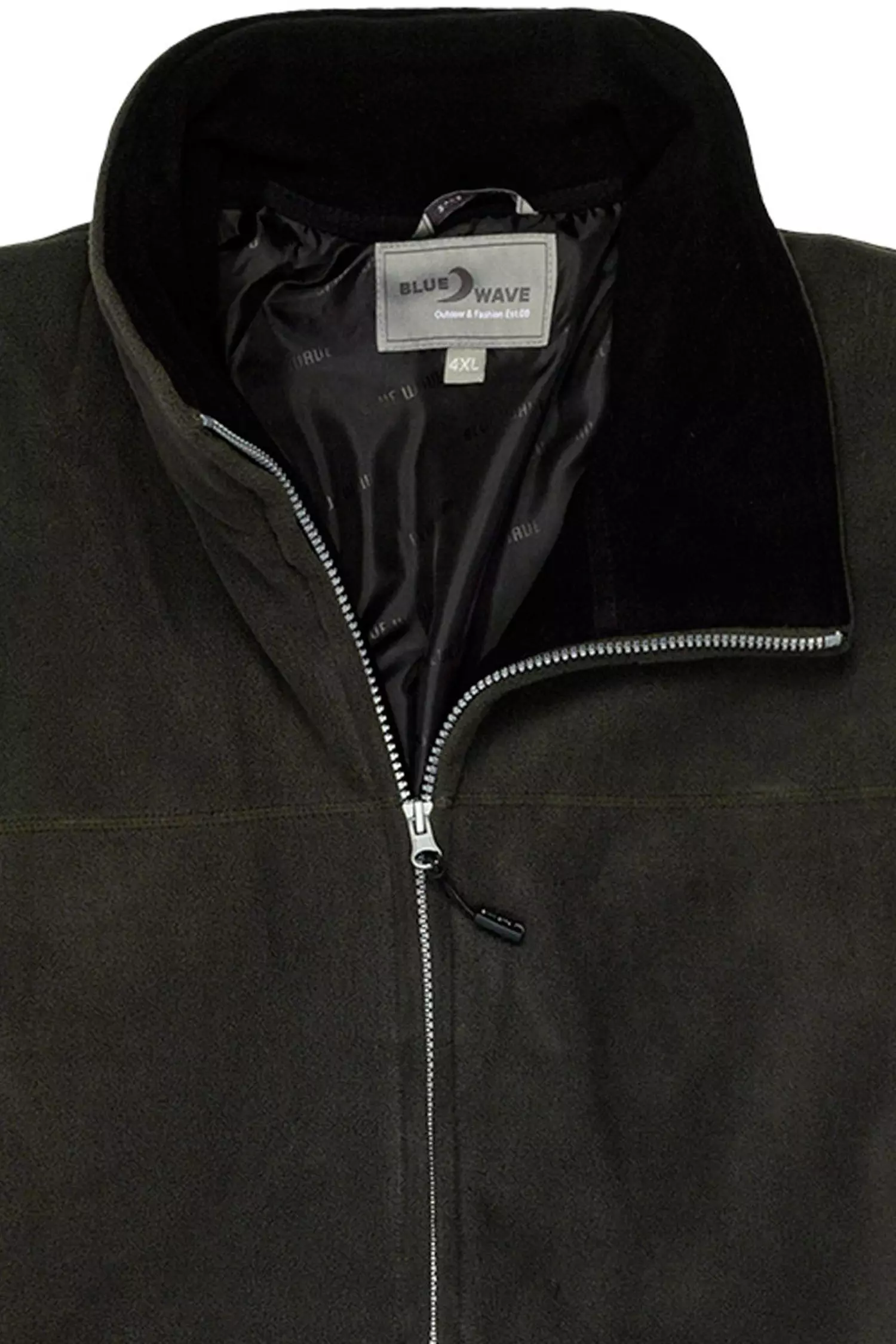 Blue Wave gevoerd fleece jack olijfgroen met zwarte kraag. Fleece jack met 2 zakken aan de voorkant met ritssluiting en een binnenzak met rits in een zware kwaliteit.