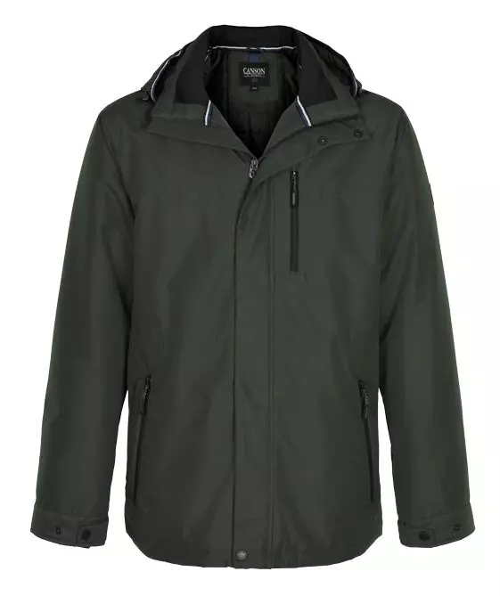 Canson grote maat winter jack groen met afneembare capuchon. Jack met vier zijzakken waarvan twee met rits en twee binnenzakken met rits, in de mouwen zitten windvangers.Jack is winddicht en waterafstotend.