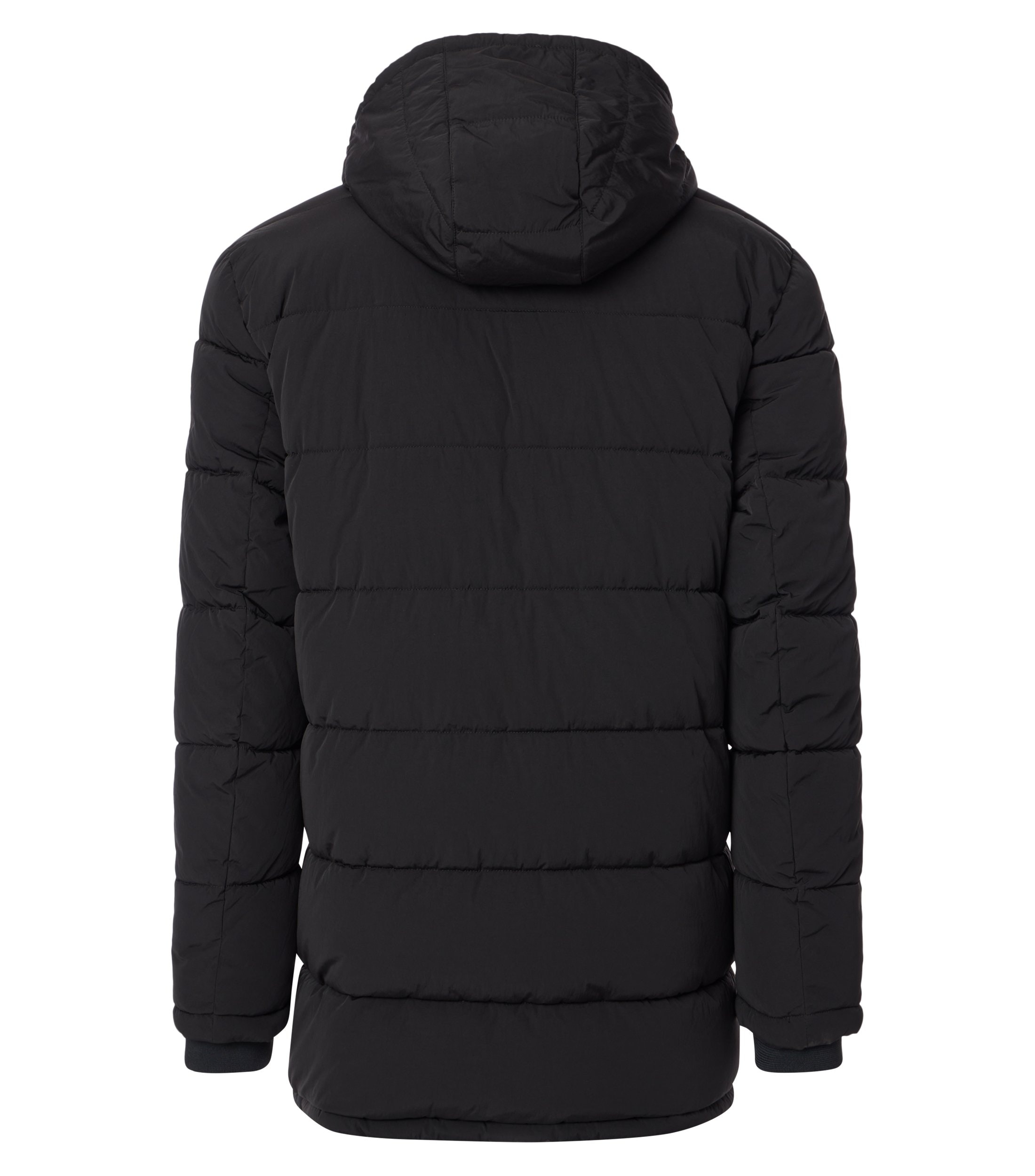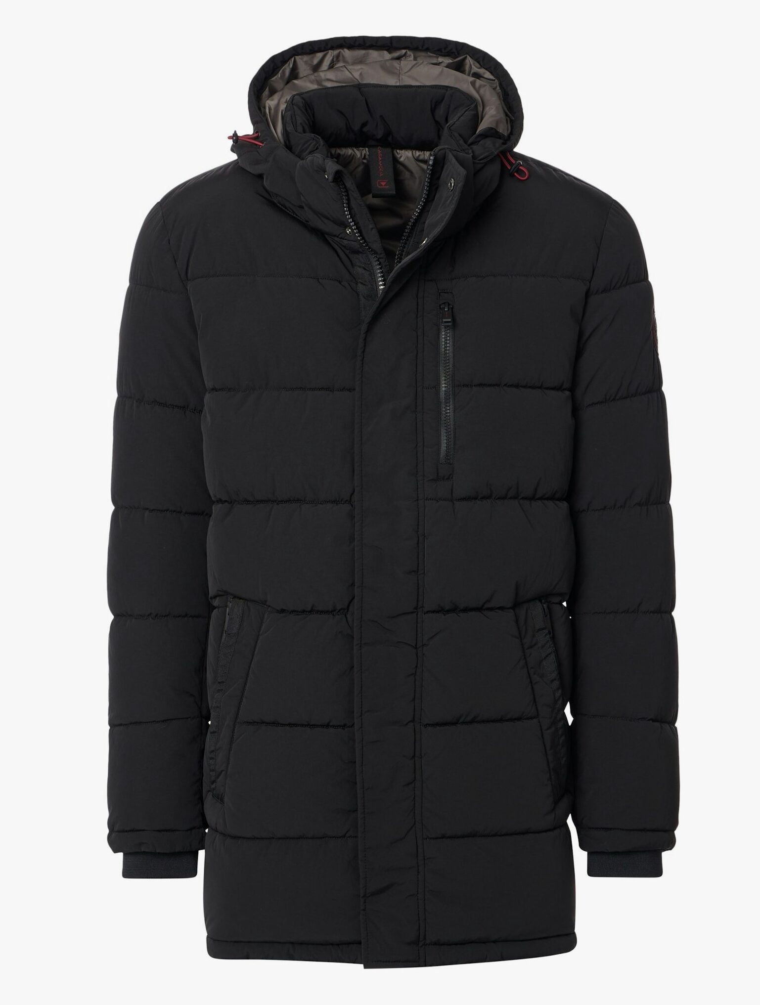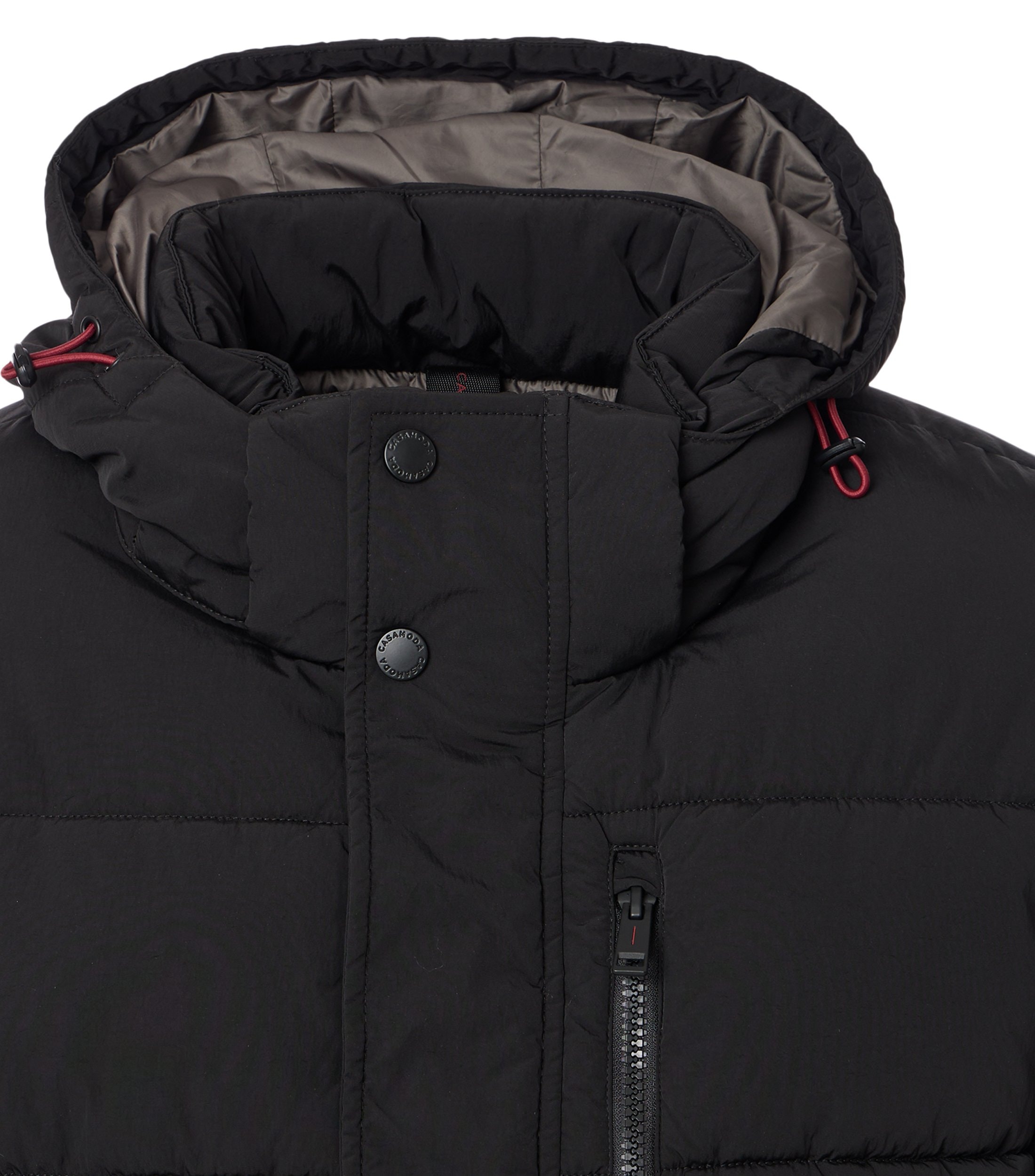 Casa Moda grote maat parka jack zwart met afneembare capuchon. Sportief parka jack in zwart met afneembare capuchon en windvangers in de mouwen. Jack heeft 3 zakken aan de buitenkant met rits en 3 binnenzakken waarvan 1 met rits. Materiaal: 100% polyester.