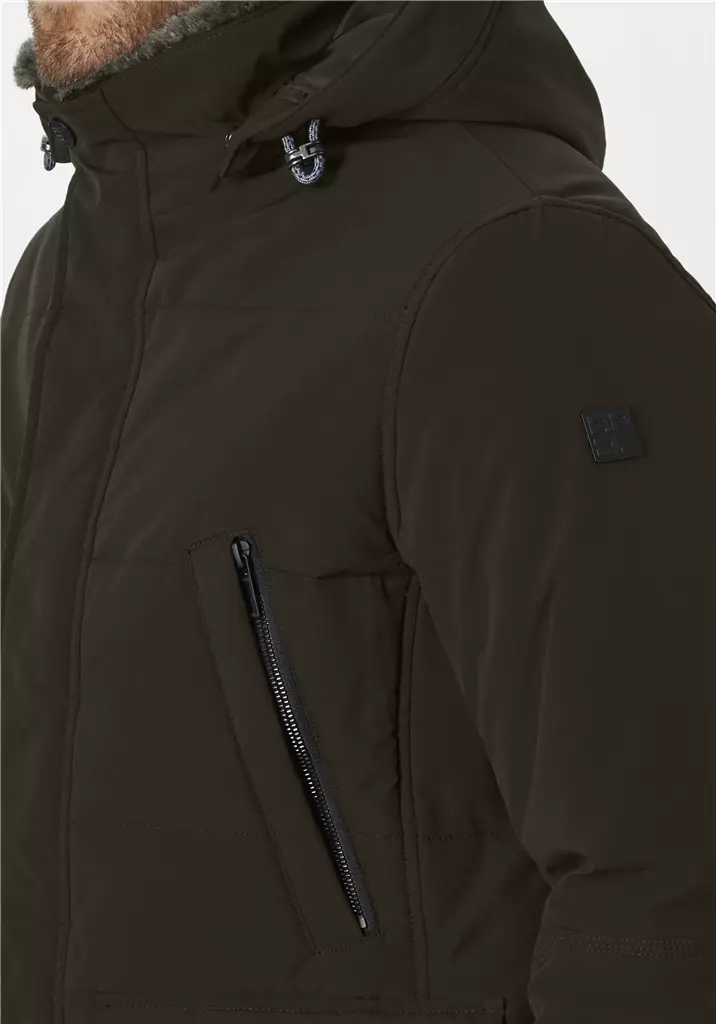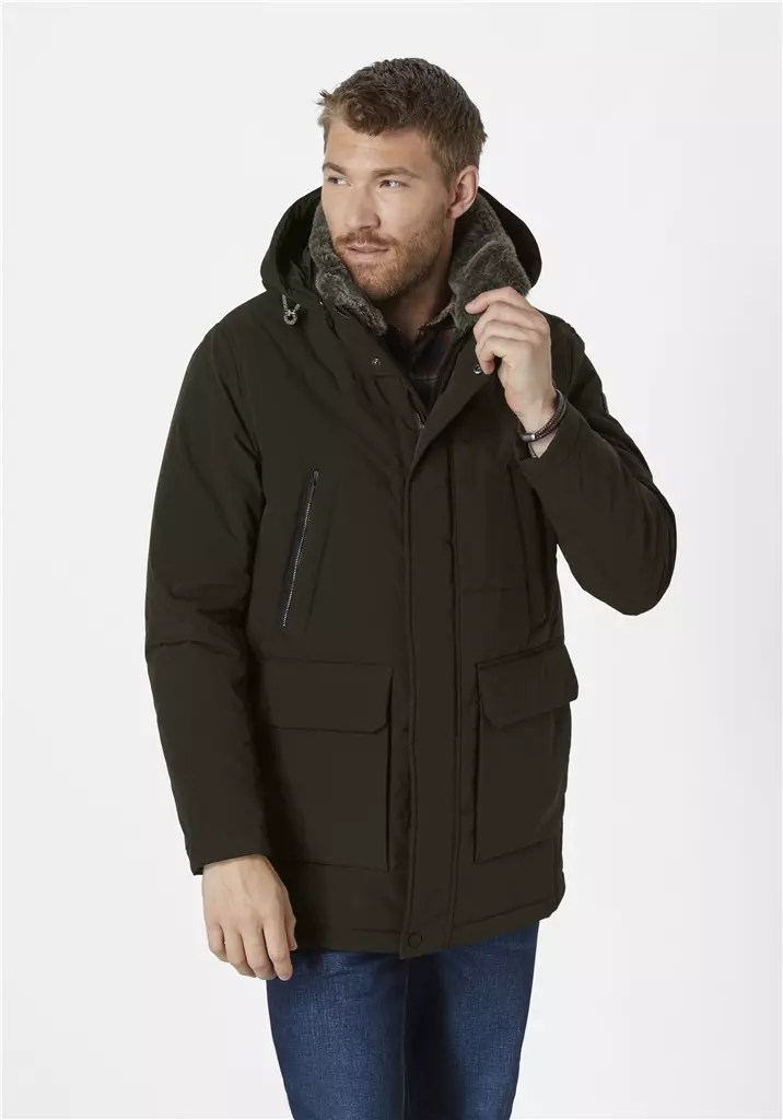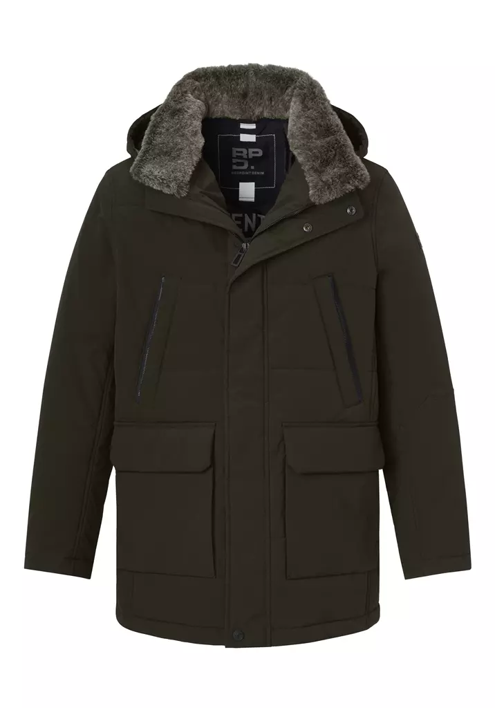Redpoint parka winterjas groen met capuchon. Zware kwaliteit winterjas heeft een afneembare capuchon en ook het bontje is afneembaar. 3/4 parka winterjack met 6 zakken aan de buitenkant en 2 binnenzakken waarvan een met rits.