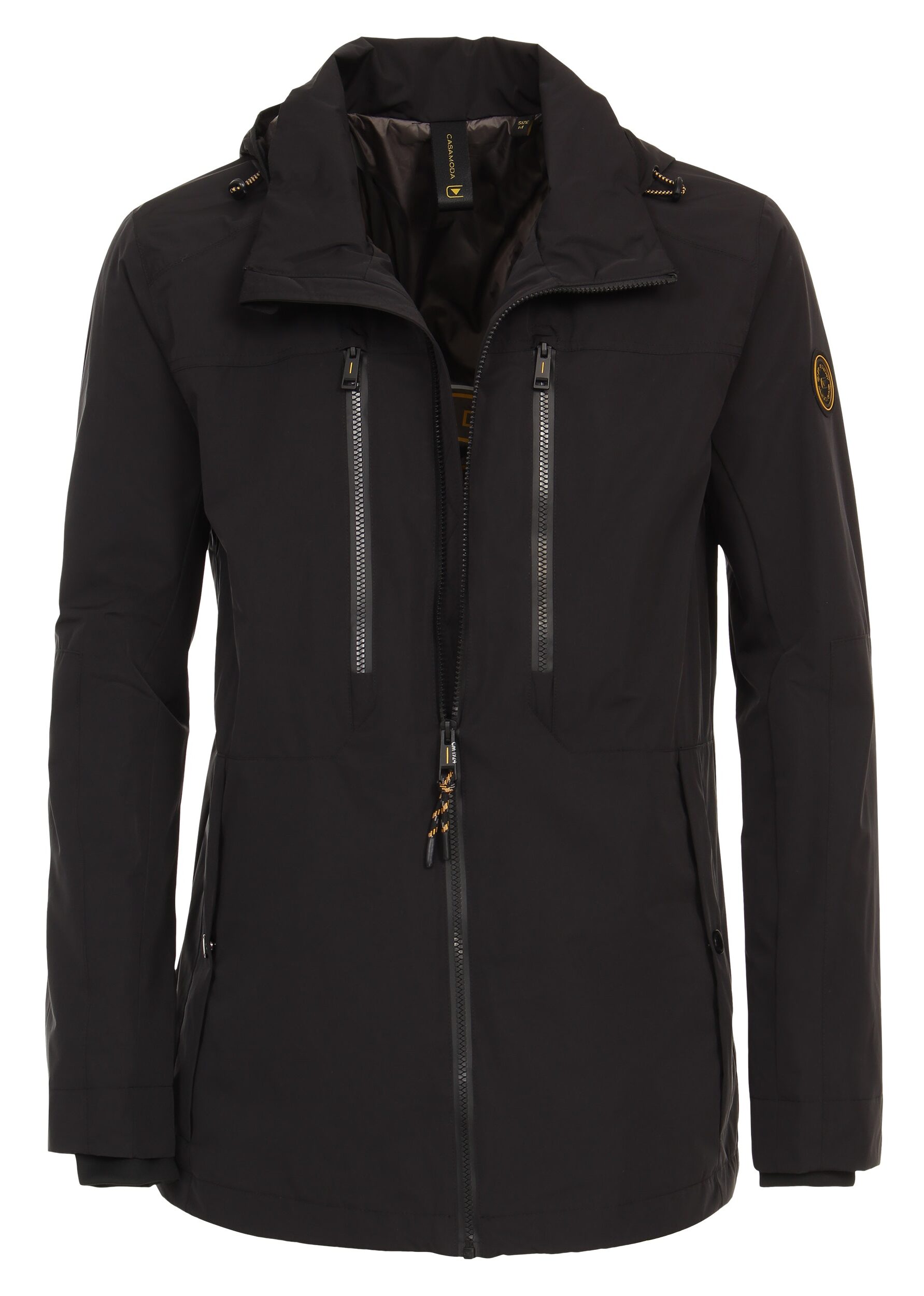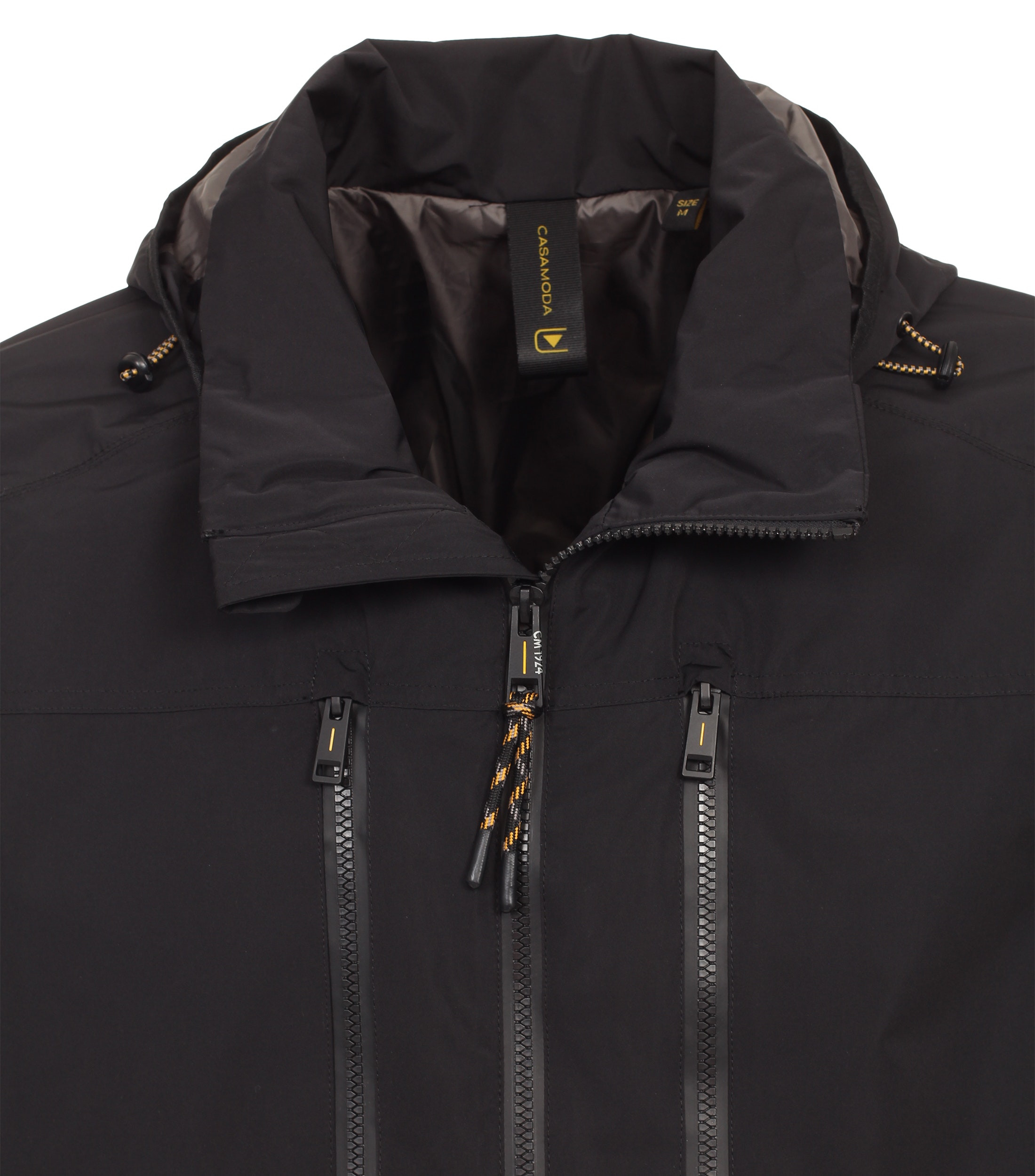 Casa Moda wind jack zwart heeft 4 zakken met rits en 2 binnenzakken waarvan 1 met rits. Jack heeft wind vangers in de mouwen en een afneembare capuchon. Jack is winddicht en waterdicht. De kwaliteit is 100% Polyester.