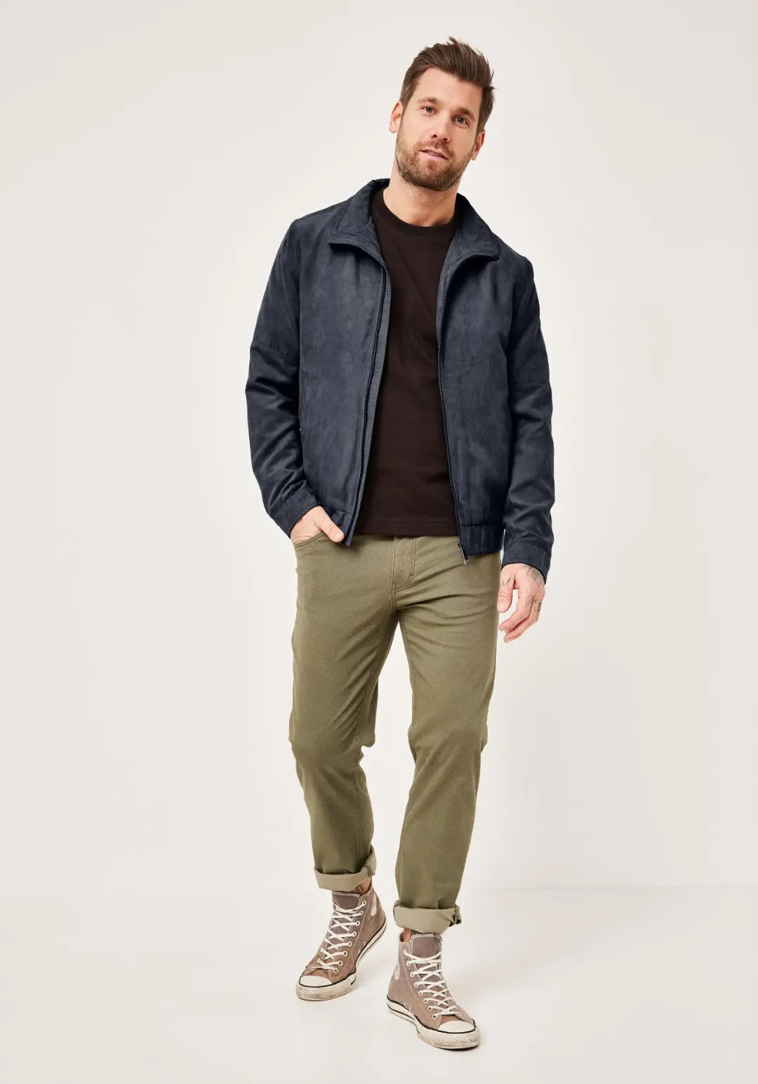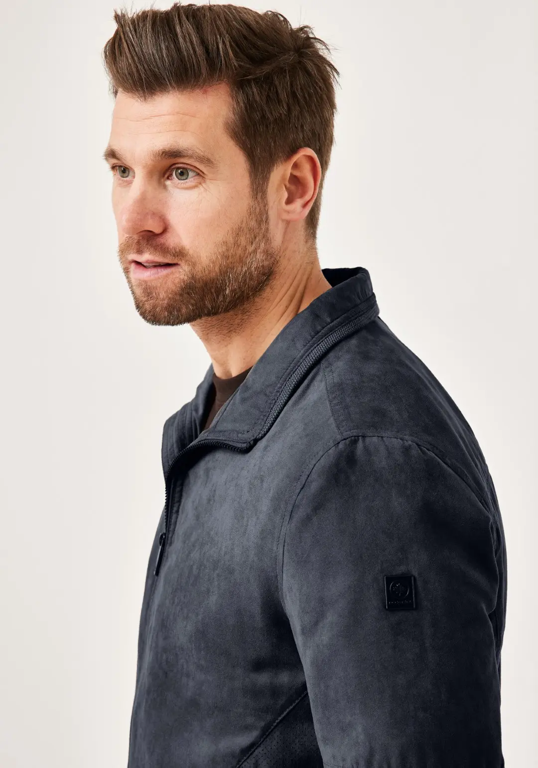 Jack in suede optiek heeft 2 zakken aan de buitenkant en 2 binnenzakken waarvan 1 met rits. Machine wasbaar op 40graden.