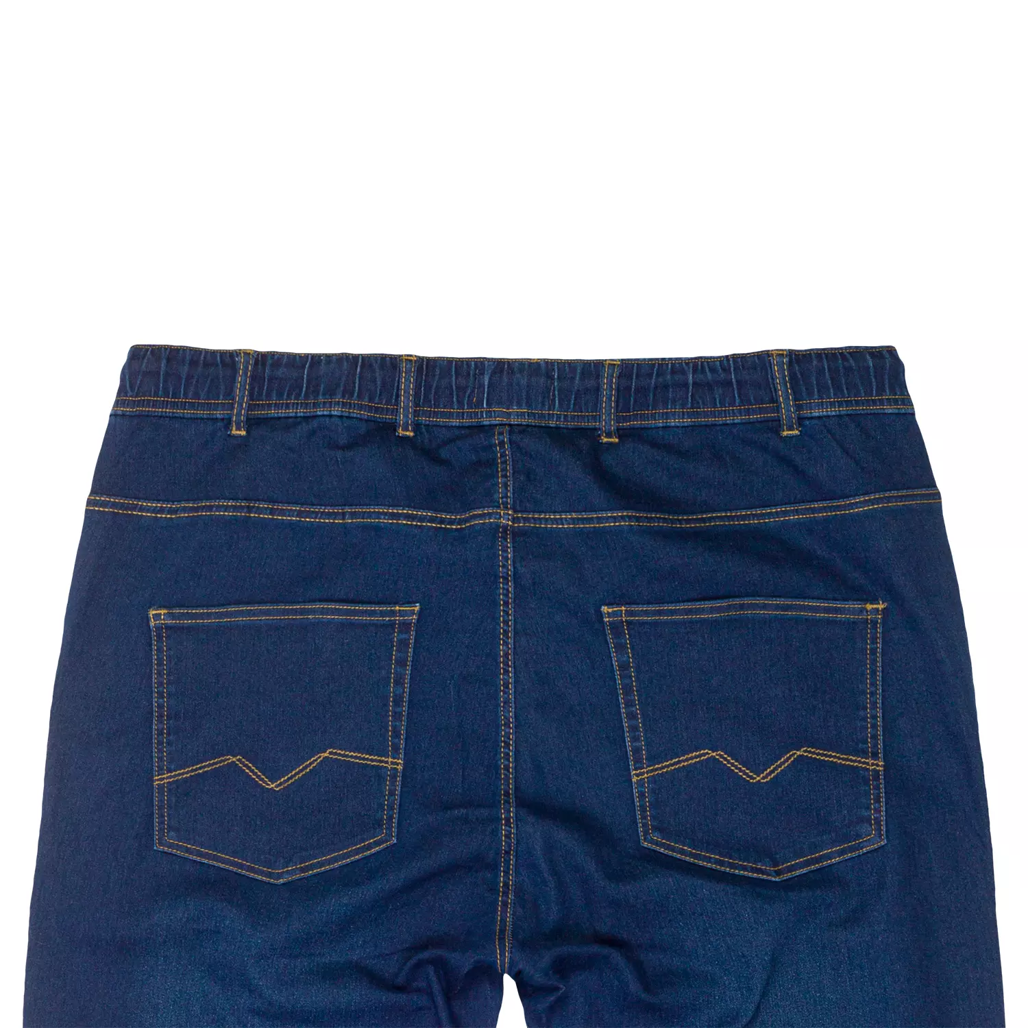 Adamo denim joggingjeans donkerblauw. Adamo denim joggingjeans met tunnel koord in de band om de joggingbroek strakker aan te trekken. Joggingjeans met 2 zijzakken en 2 achterzakken, Deze broek heeft een volledige stretch band zonder knoop maar wel met gulp ritssluiting.