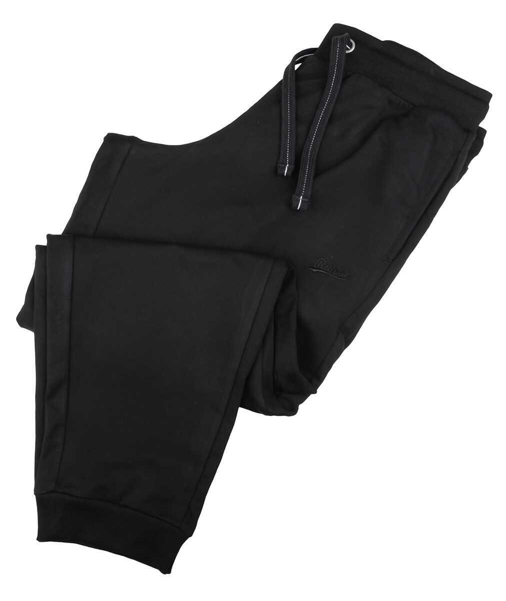 Redfield joggingbroek in zwart met boord. Joggingbroek met 2 zijzakken en tunnel koord in de band met aan de onderkant van de pijp een tricot manchet. De kwaliteit is 70% katoen en 30% polyester.