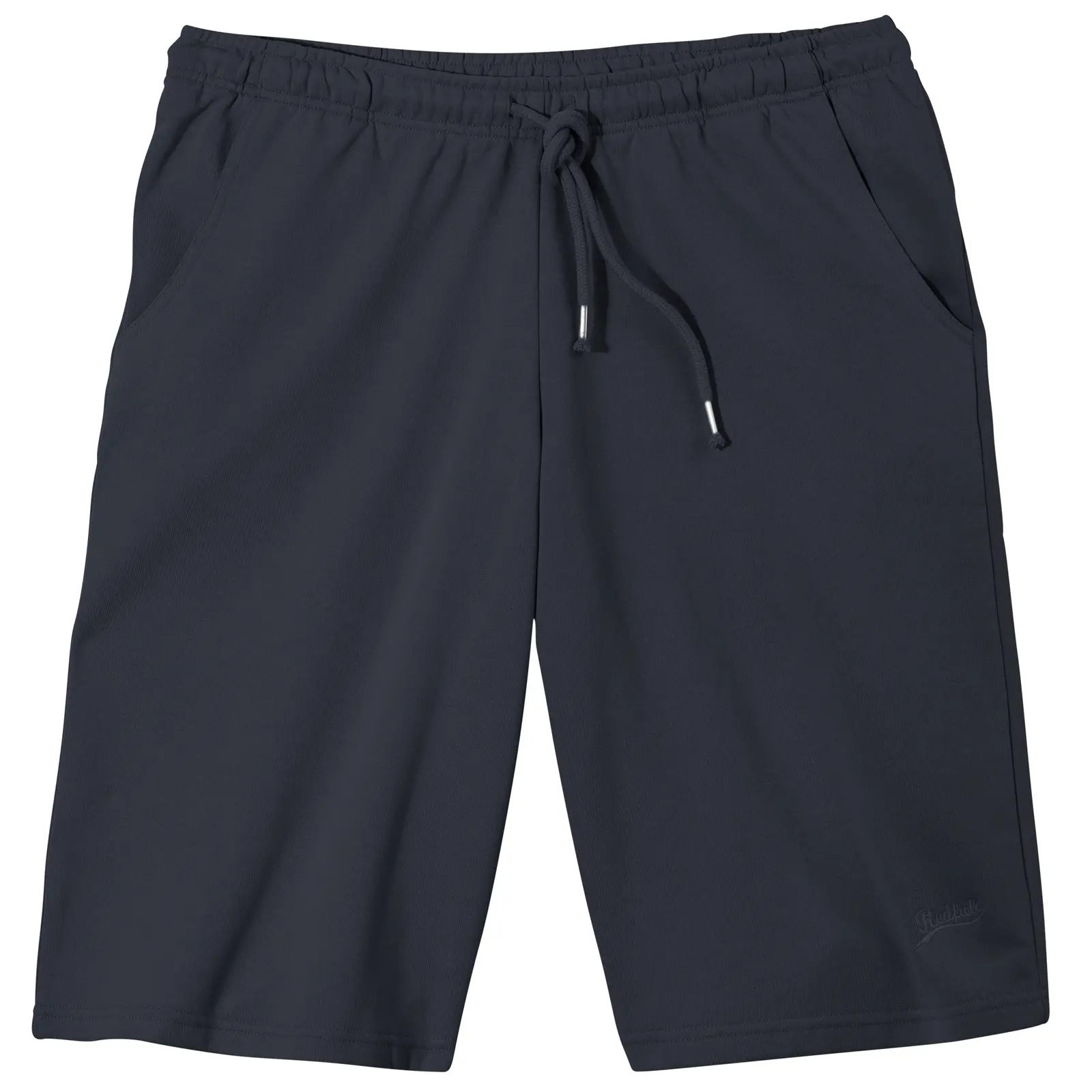 Redfield korte joggingbroek in donkerblauw met twee zijzakken en een tunnel koord in de band. De kwaliteit is 70%katoen en 30%polyester.