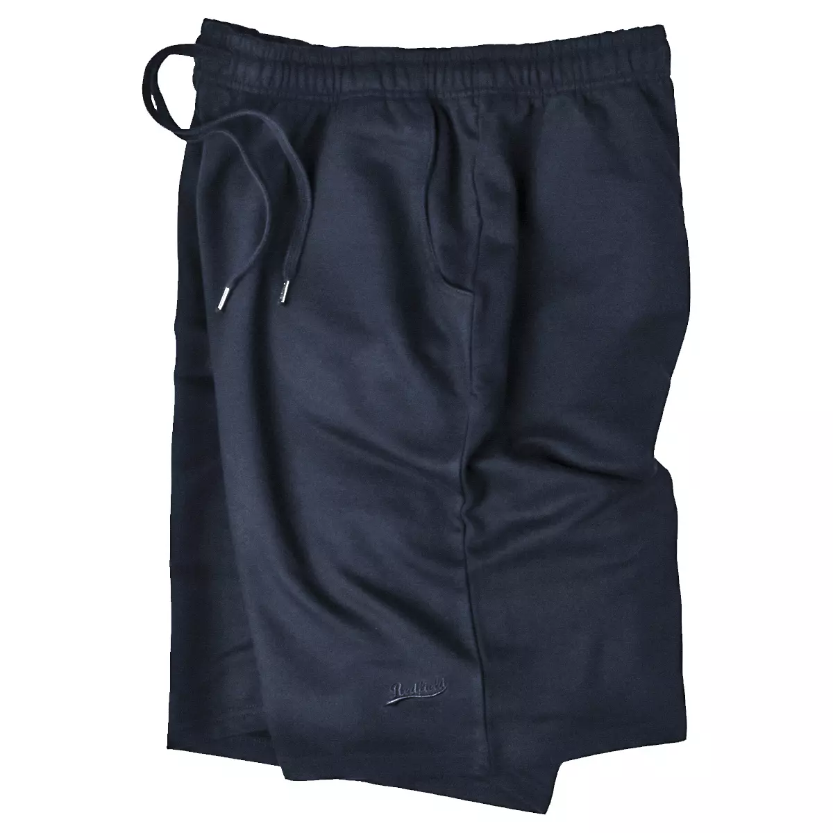 Redfield korte joggingbroek in donkerblauw met twee zijzakken en een tunnel koord in de band. De kwaliteit is 70%katoen en 30%polyester.