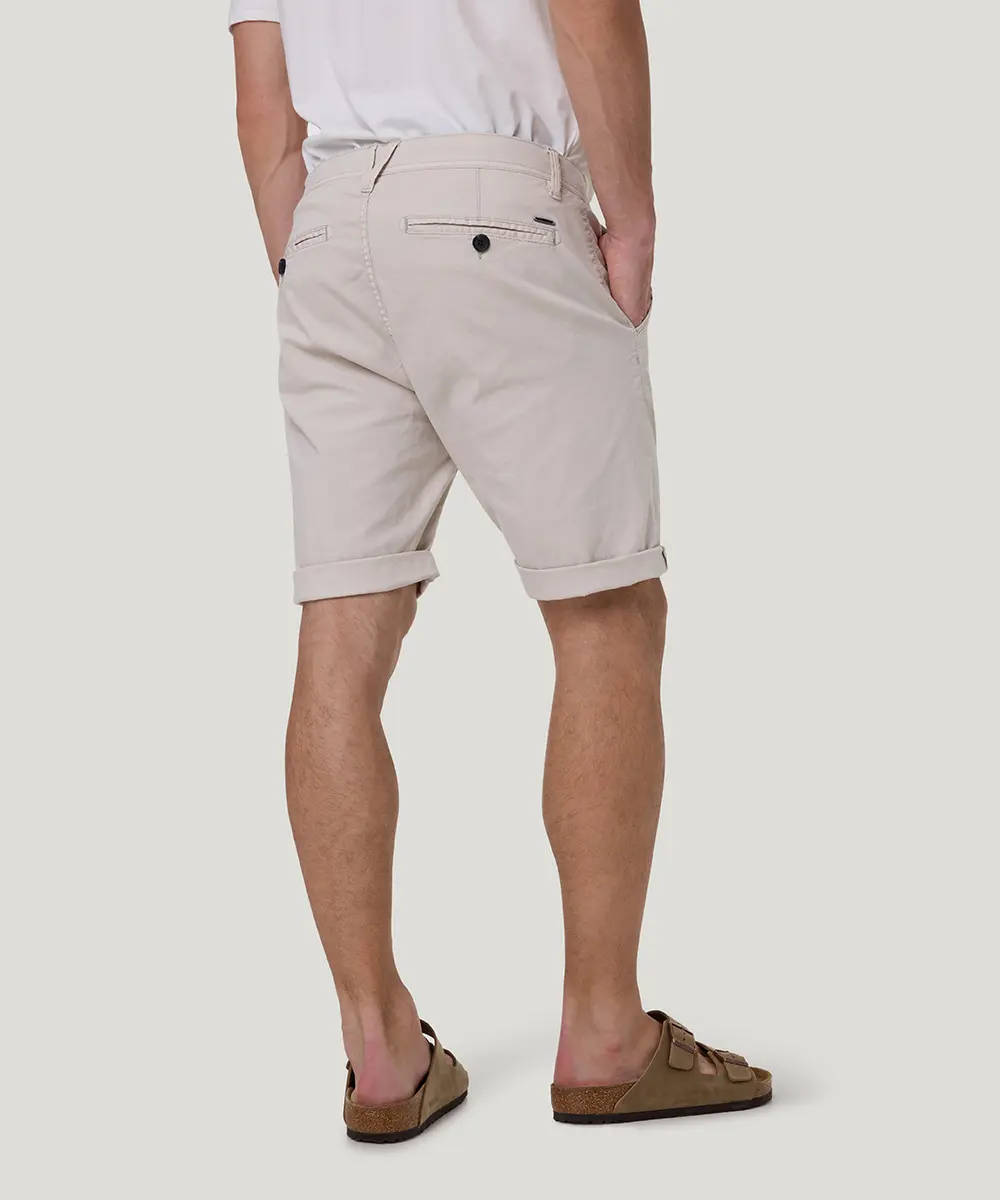 Pioneer chino stretch korte broek ecru. Chino stretch korte broek gulp met ritssluiting. 98% katoen en 2% elastan.