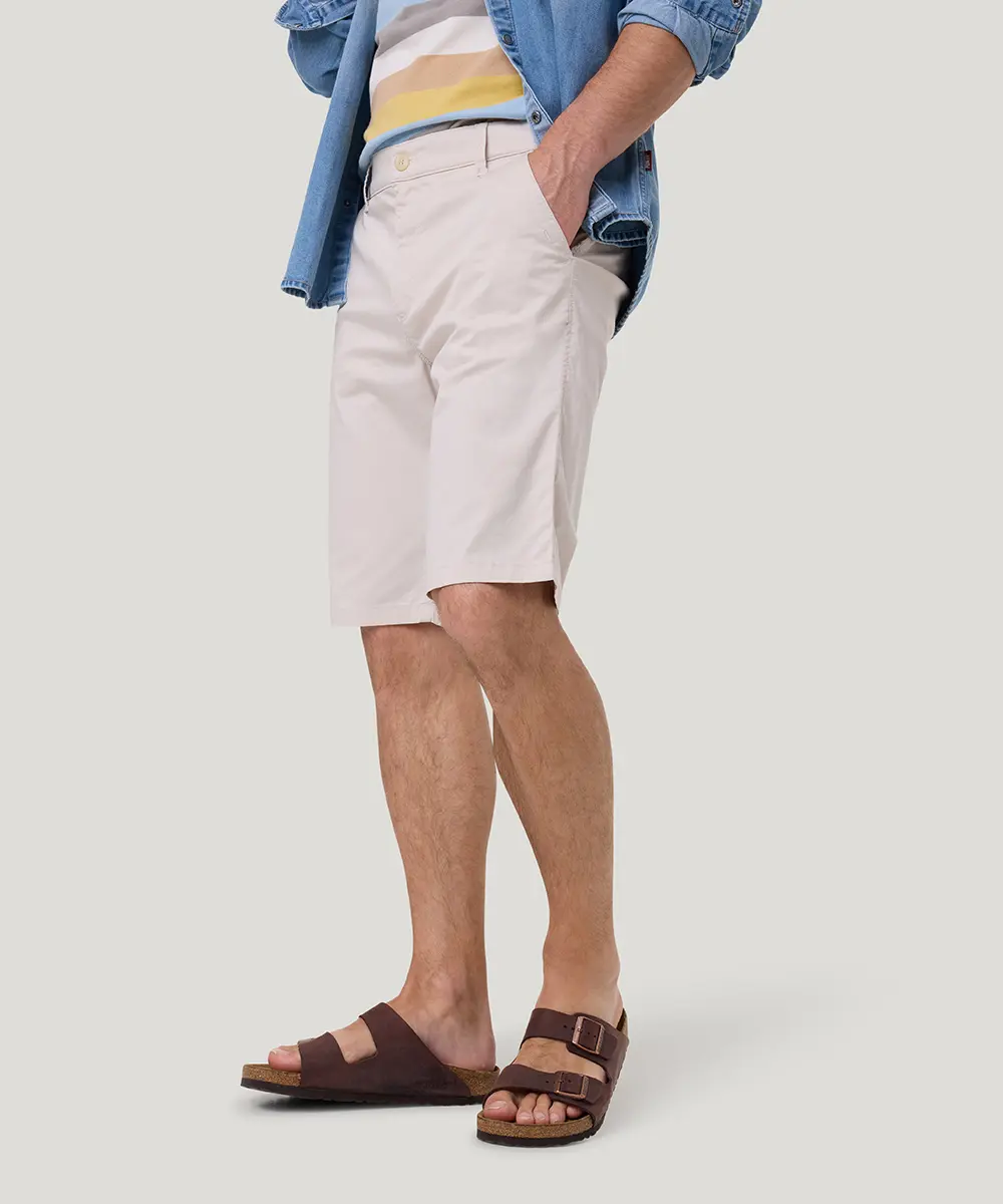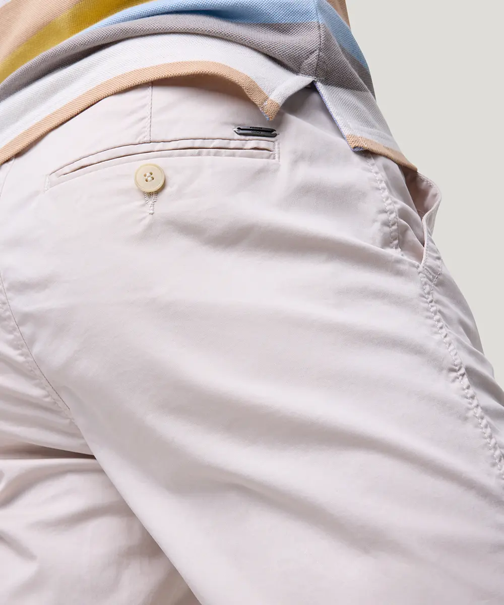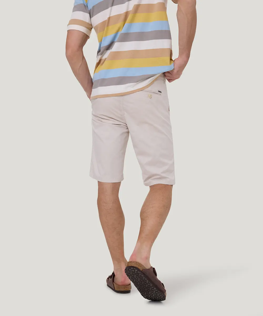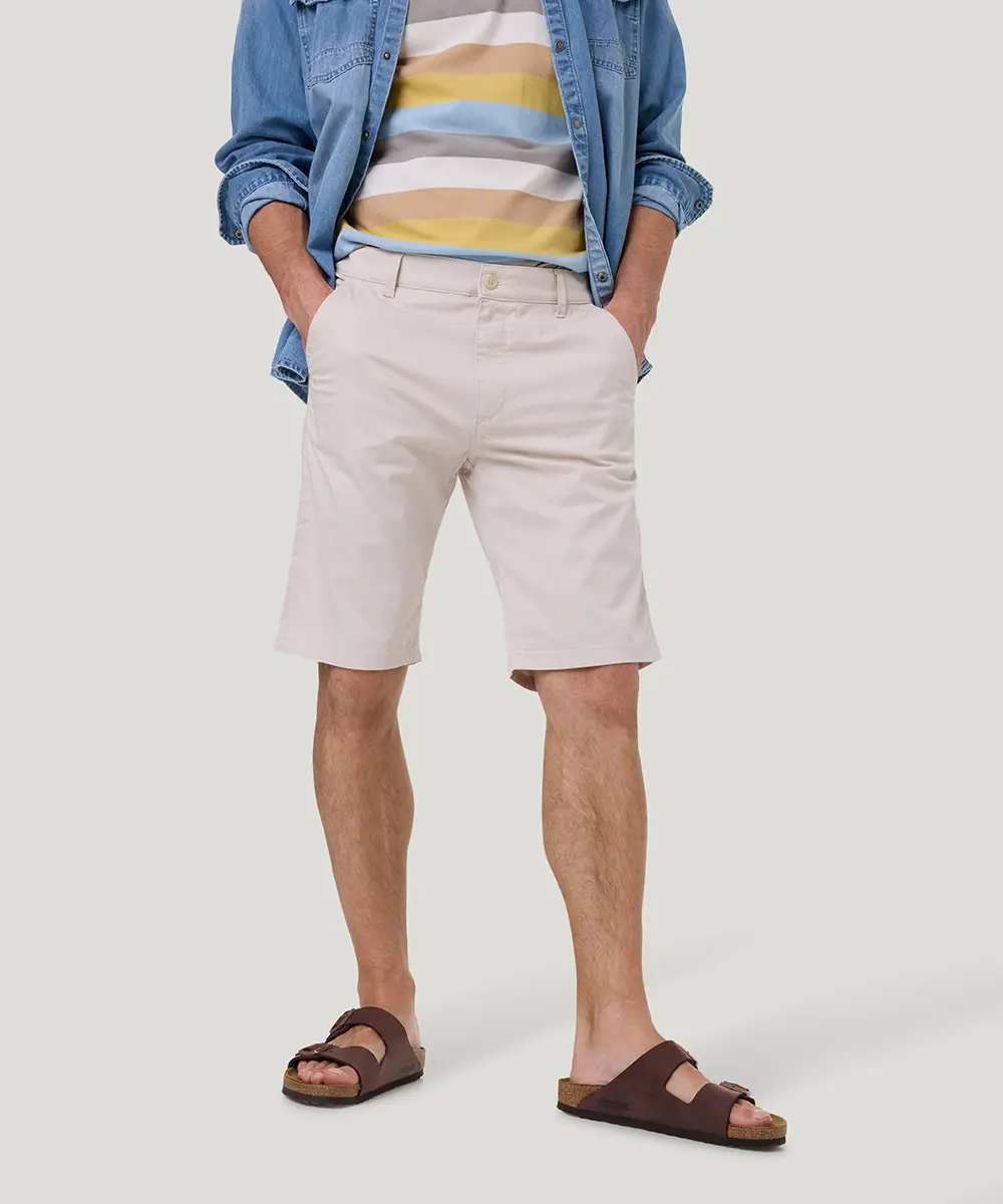 Pioneer chino stretch bermuda ecru gulp met ritssluiting. De kwaliteit is 97% katoen en 3% elastan.