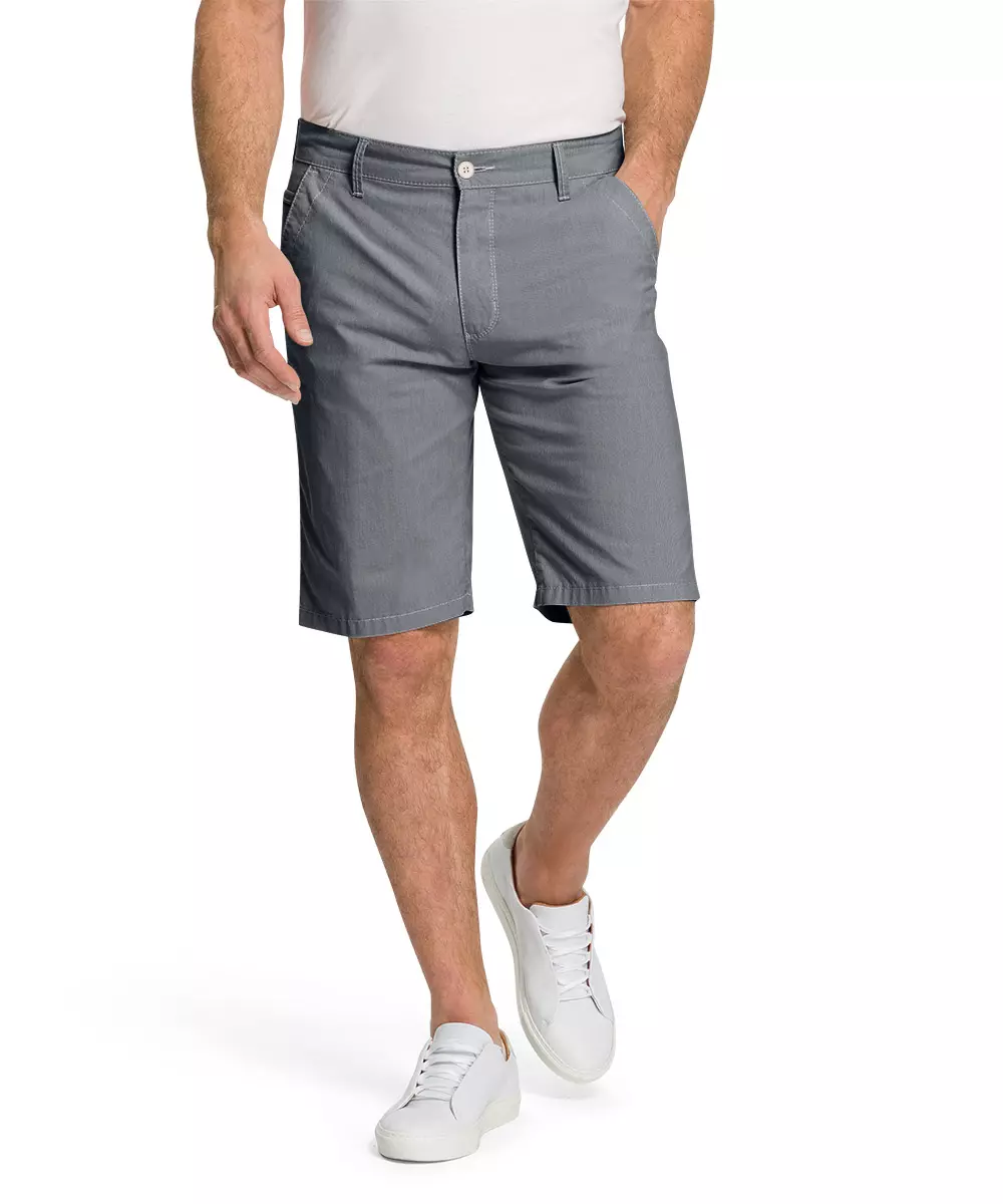 Pioneer grote maat chino stretch bermuda grijs. Chino stretch bermuda in grijs, gulp met ritssluiting. De kwaliteit is 63%katoen, 34%polyester en 3%elastan.