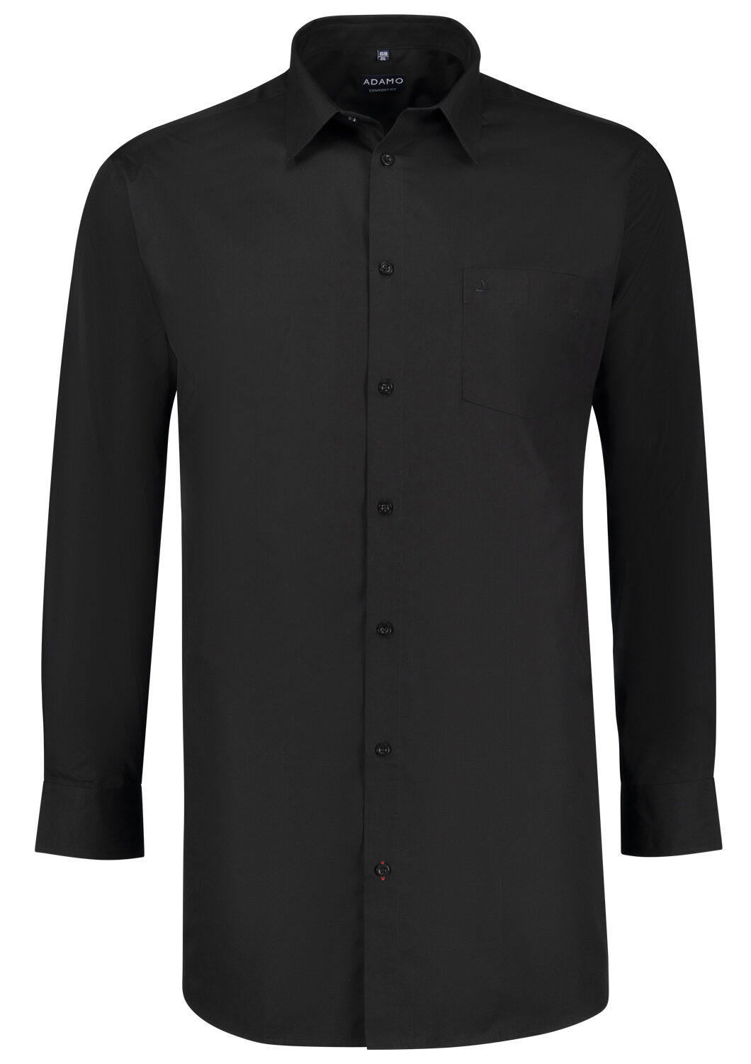 Adamo grote maat overhemd lange mouw uni zwart met borstzakje. Overhemd in 60% katoen en 40% polyester.