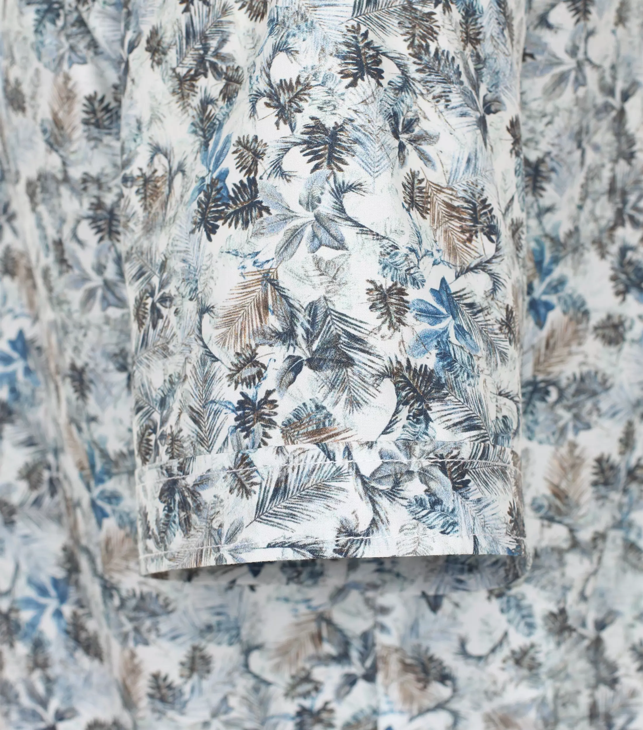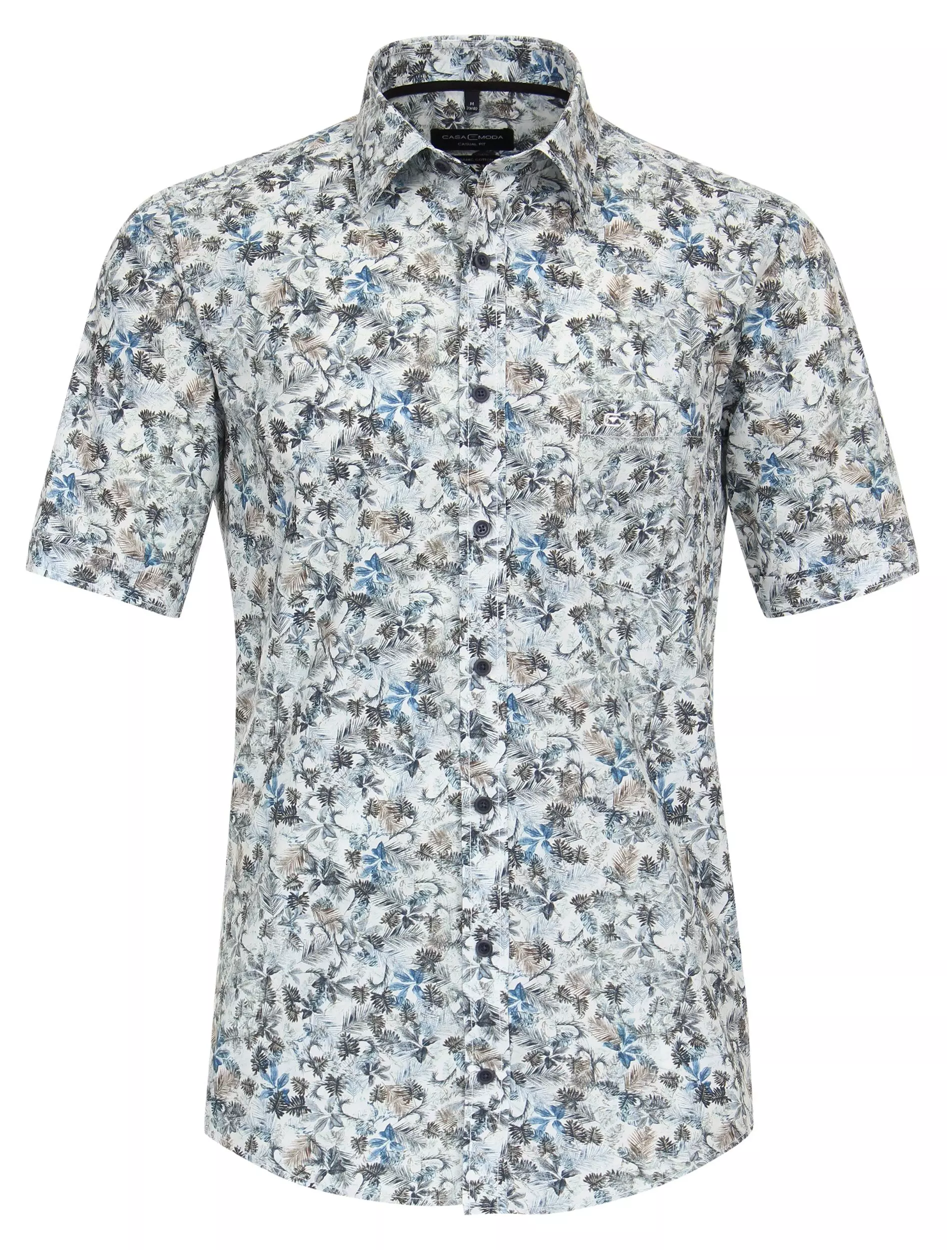 Casa Moda overhemd korte mouw met borstzakje in een gekleurd blad design. De kwaliteit is 100% katoen.