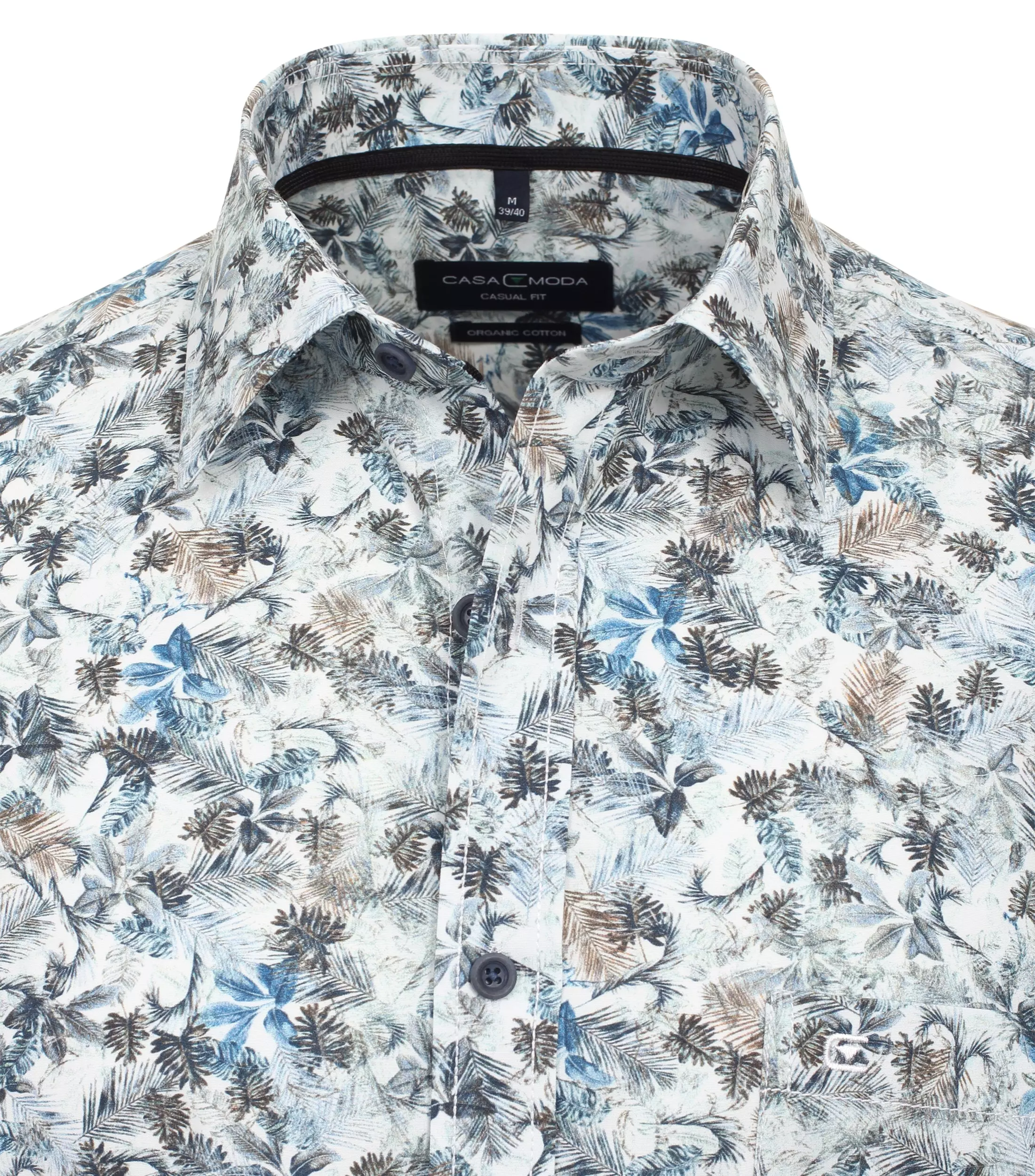 Casa Moda overhemd korte mouw met borstzakje in een gekleurd blad design. De kwaliteit is 100% katoen.