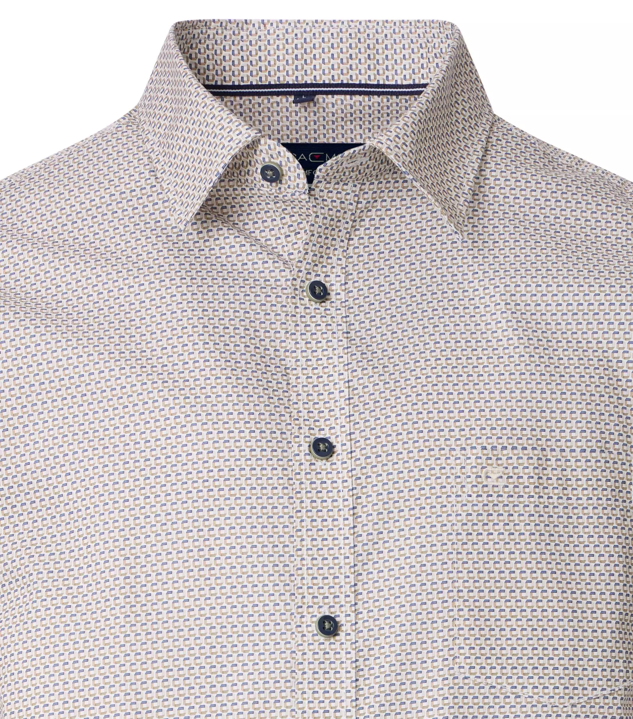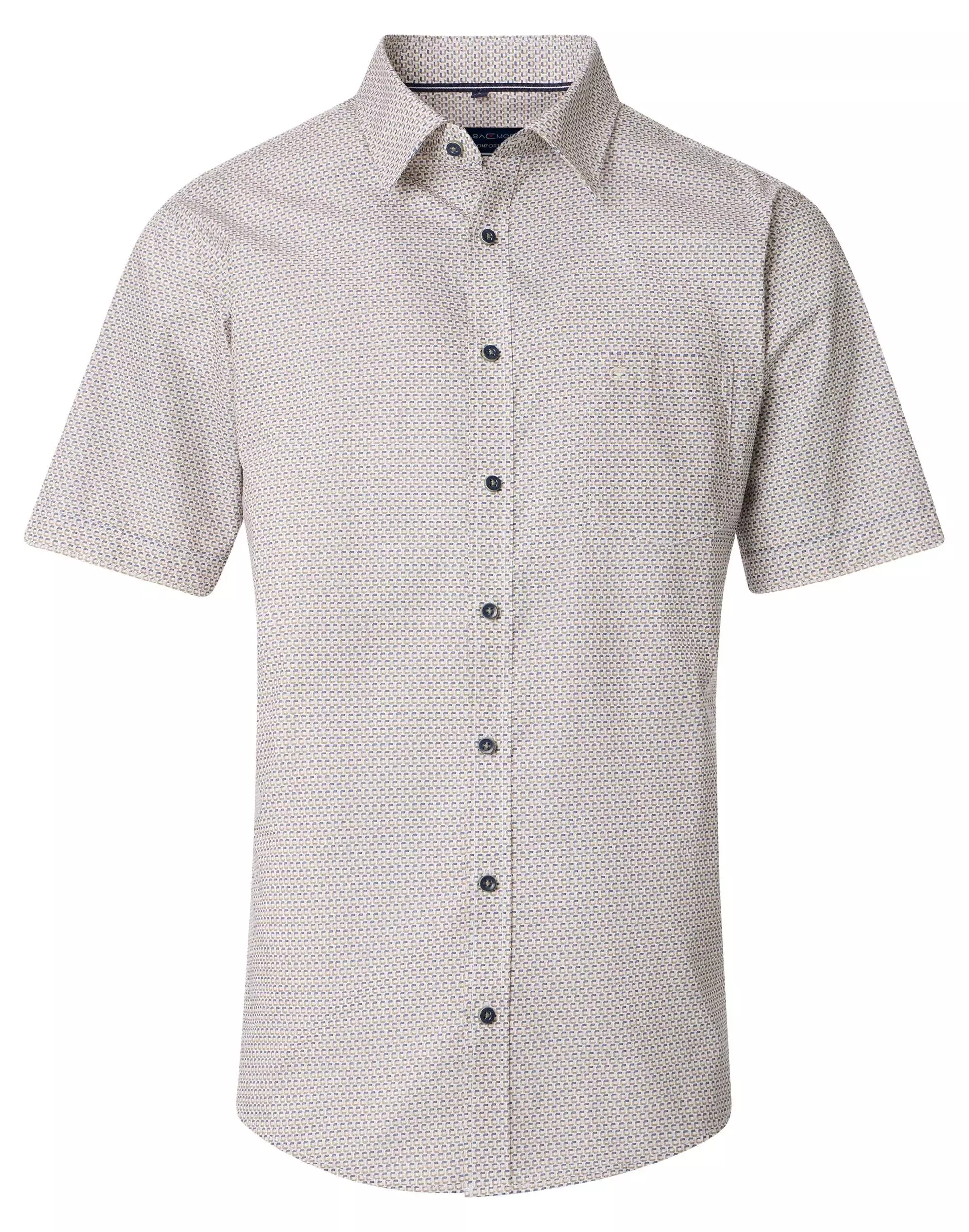 Casa Moda overhemd korte mouw blauw en camel fantasie design. Overhemd met borstzakje in model comfort fit 100% katoen.
