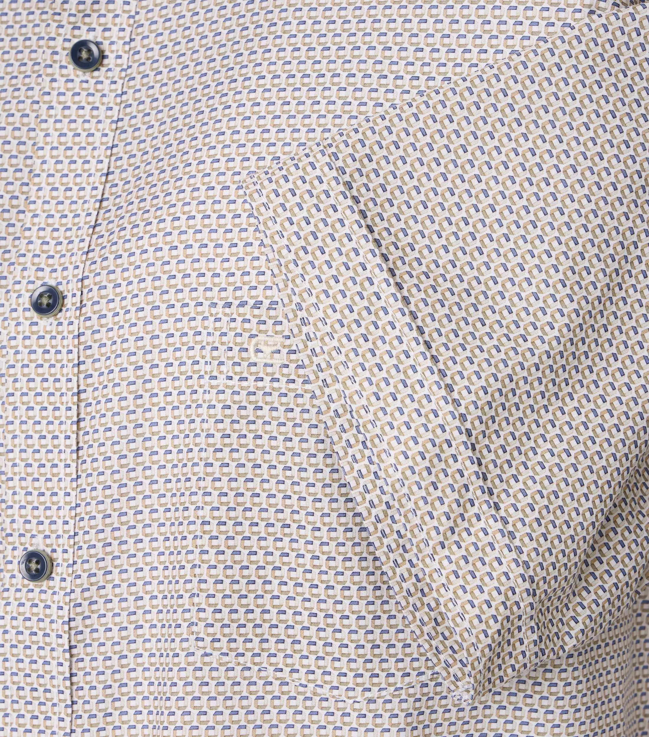 Casa Moda overhemd korte mouw blauw en camel fantasie design. Overhemd met borstzakje in model comfort fit 100% katoen.