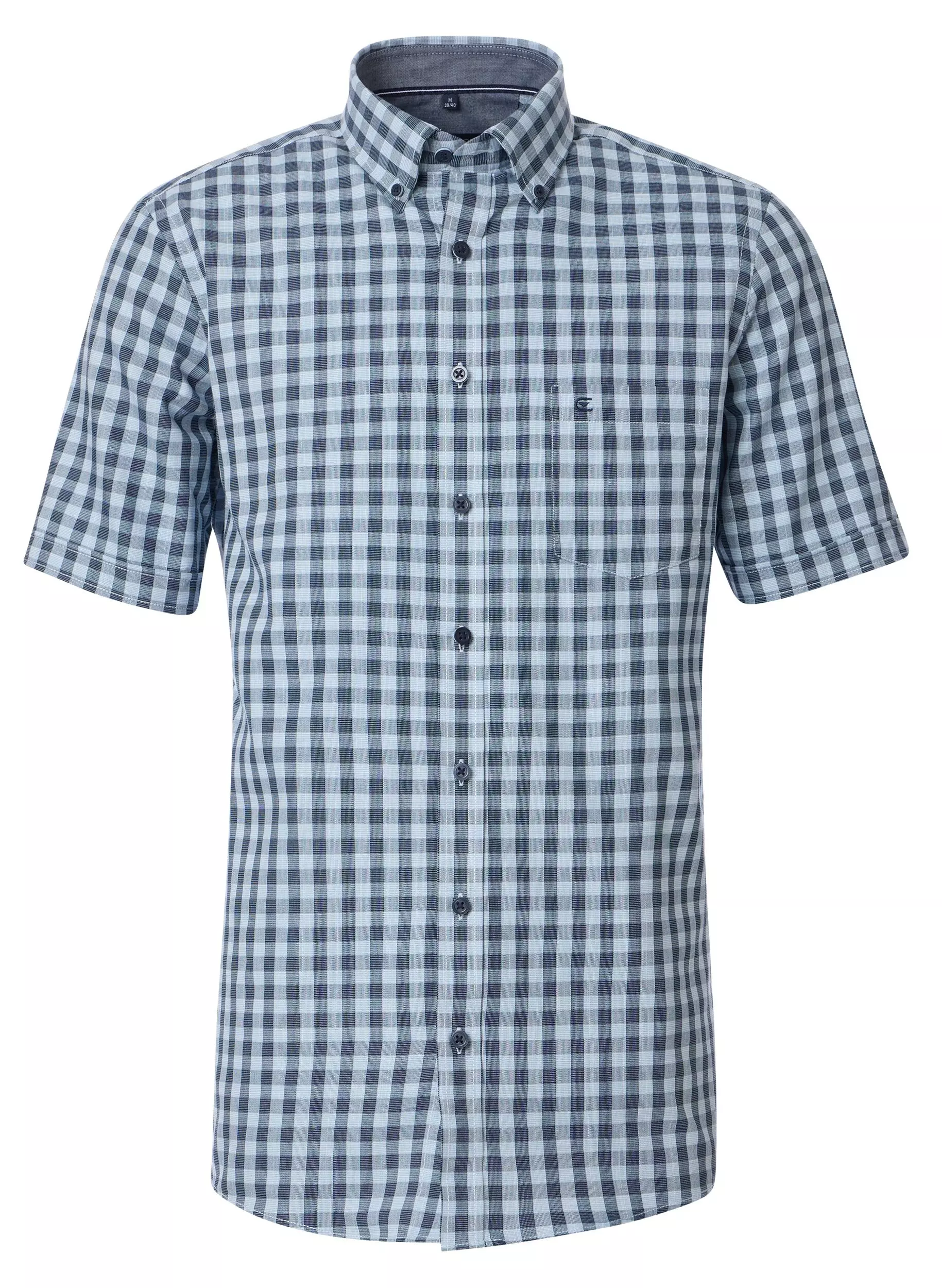 Ontdek het Korte Mouw Overhemd van Casa Moda: Comfort Fit in blauw met donkerblauw Ruit