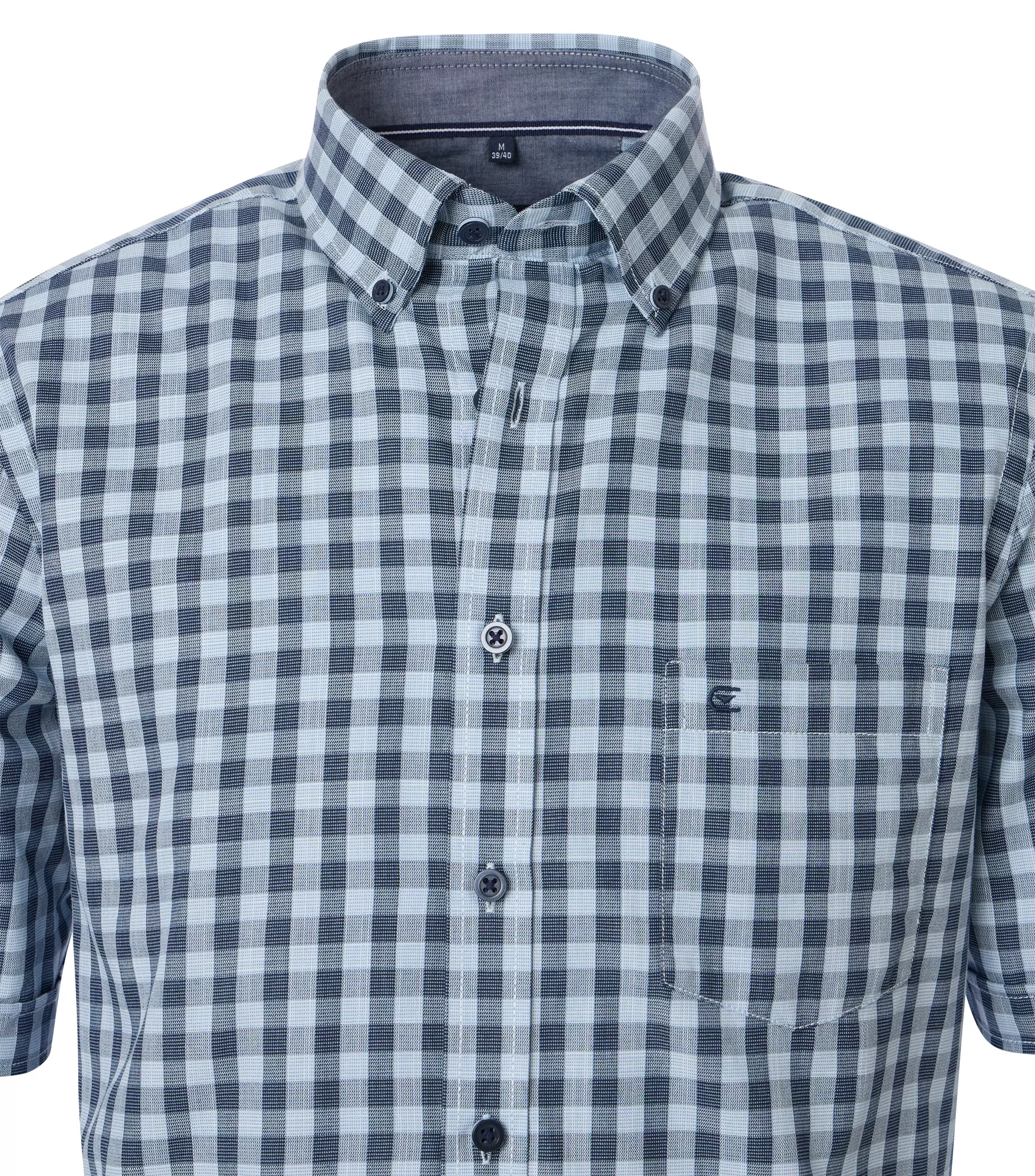 Casa Moda overhemd korte mouw met borstzakje in een blauw en donkerblauwe ruit met kraag button down. De kwaliteit is 100% katoen model comfort fit.