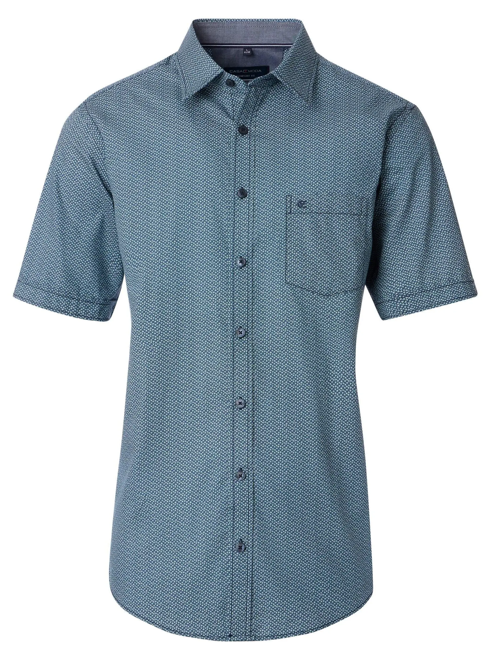 Casa Moda overhemd korte mouw blauw en groen fantasie design. Overhemd met borstzakje in model comfort fit 100% katoen.