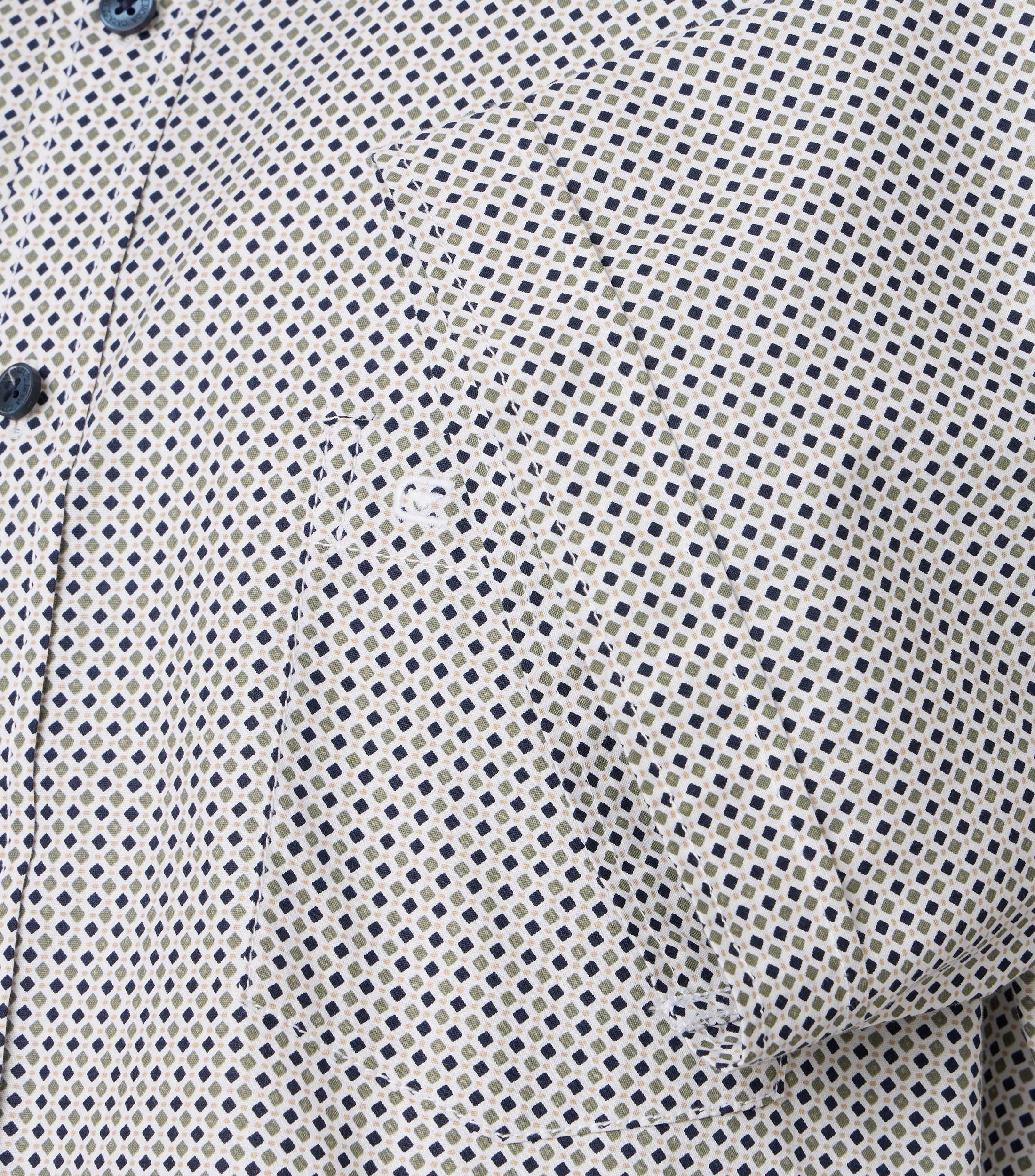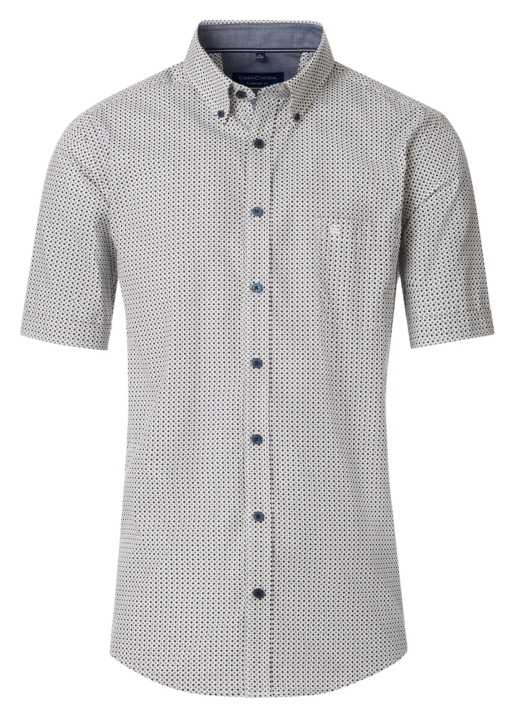 Casa Moda overhemd korte mouw blauw en olijfgroen fantasie design. Overhemd met borstzakje en kraag button down in model comfort fit 100% katoen.