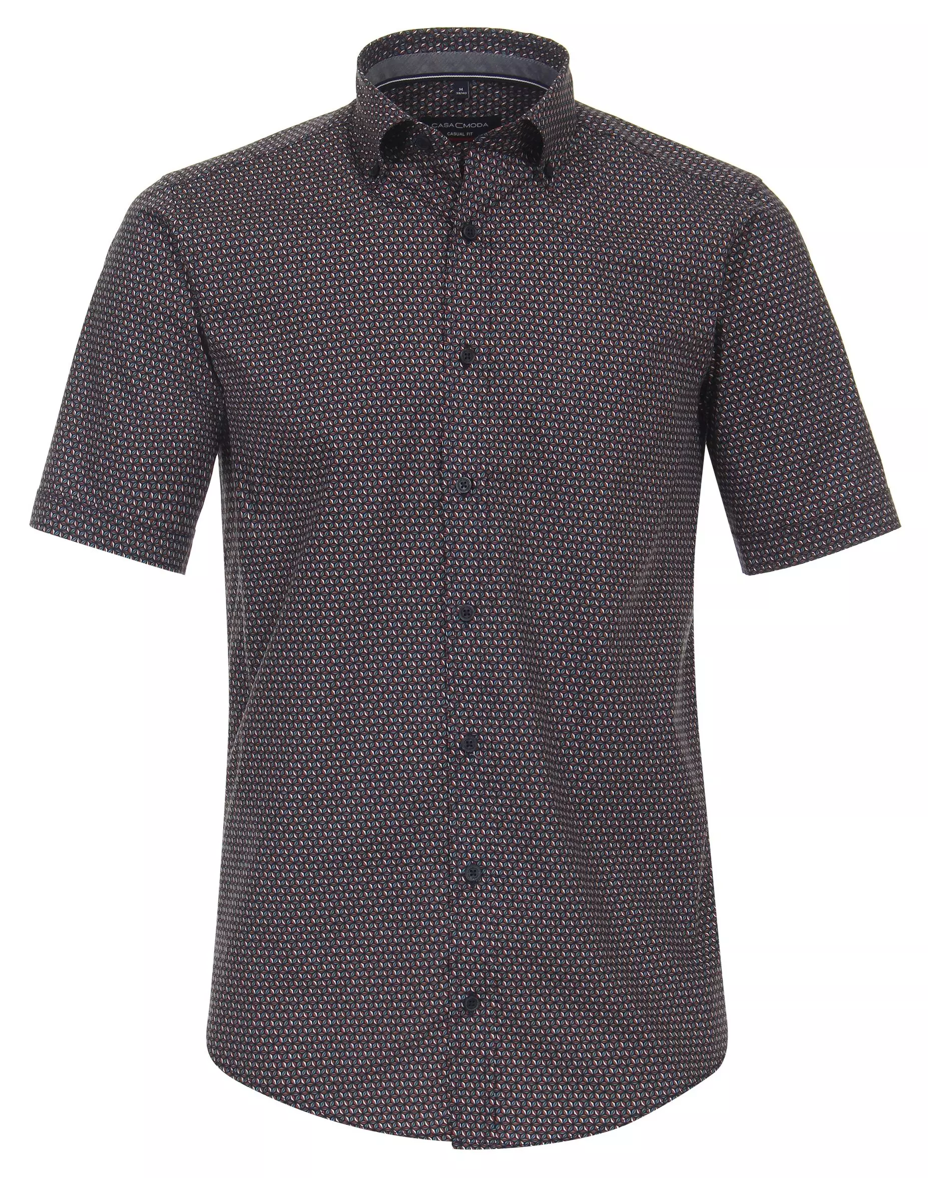 Casa Moda overhemd korte mouw met kraag button down in donkerblauw met lichtblauw, rood en wit fantasie design. De kwaliteit is 100% katoen model casual fit.