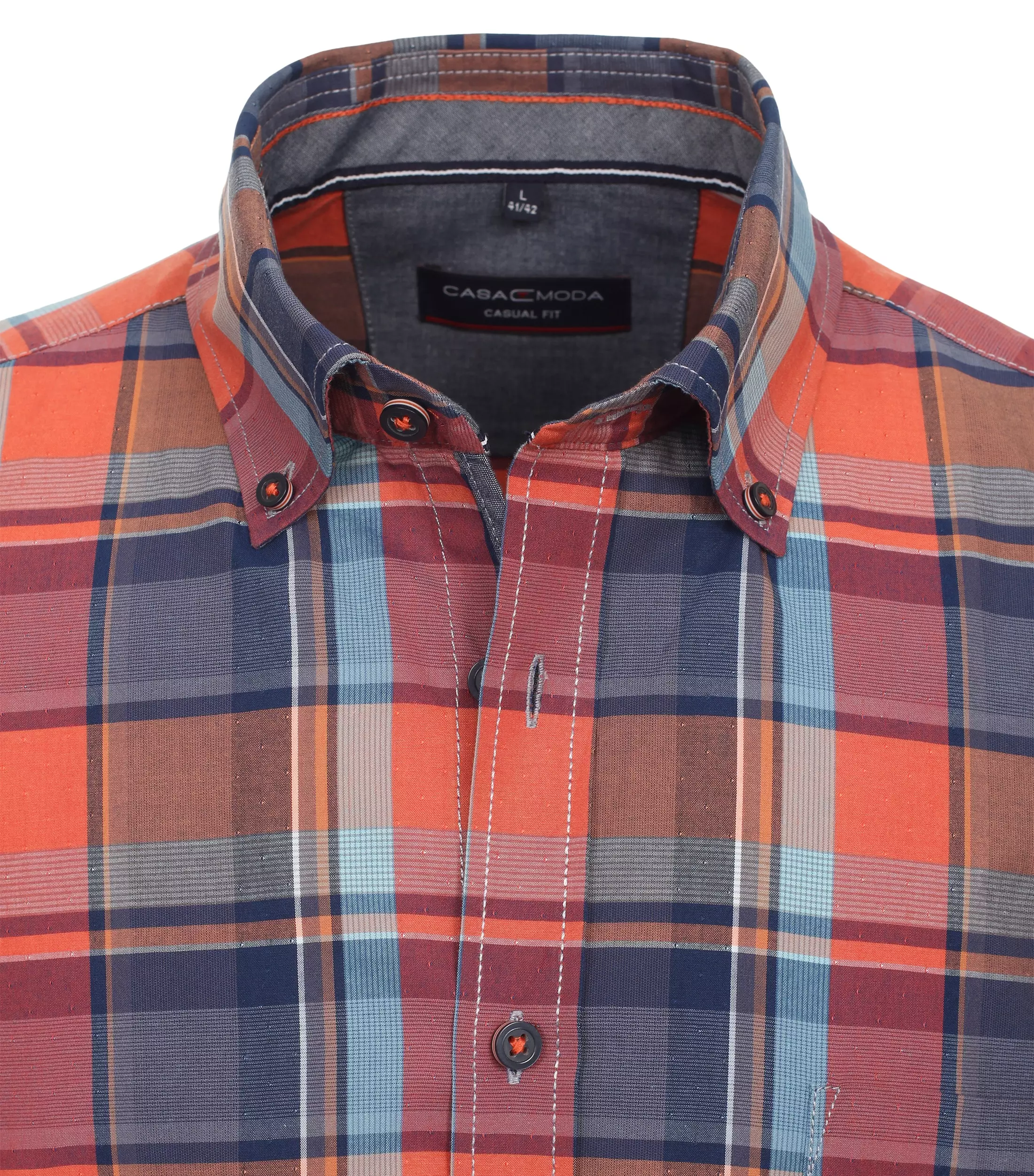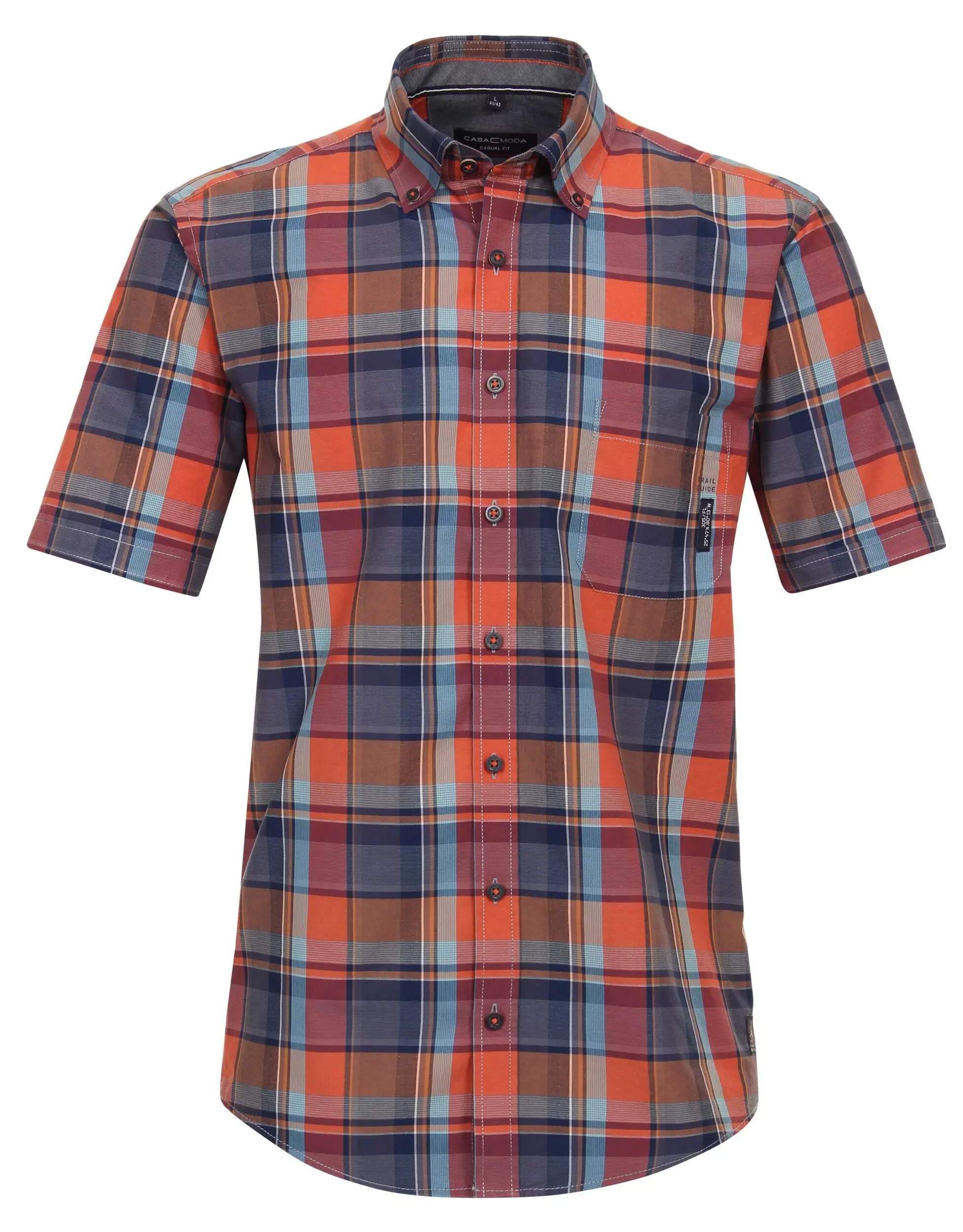 Casa Moda overhemd korte mouw en borstzakje in een gekleurde ruit met kraag button down. De kwaliteit is 100% katoen model casual fit.